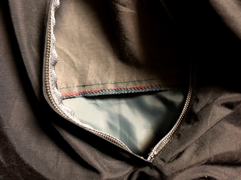 내부 플랩이 맨 위만 살짝 있다. 이 역시 경량화의 일환인 거 같은 데 지퍼를 끝까지 올릴 때 상당히 걸리적 거린다. 이 옷에서 가장 마음에 들지 않는 부분.