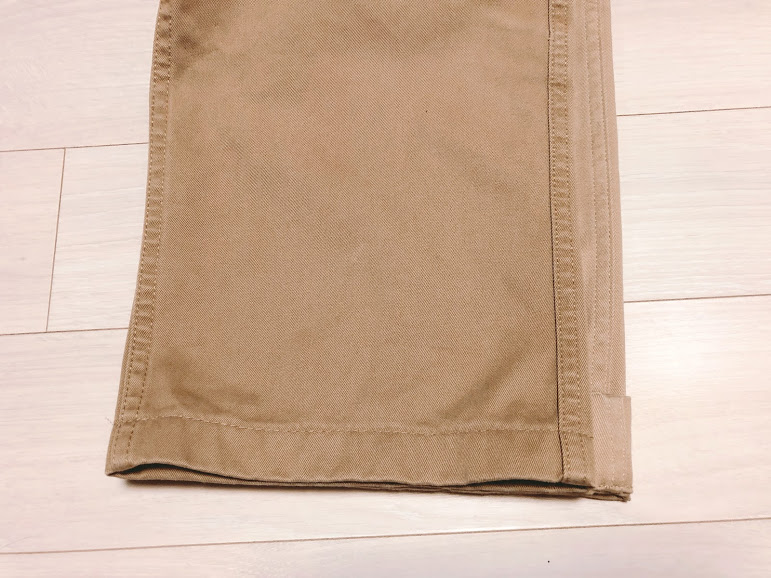 바지 폭은 1cm 조금 넘게 차이난다. 유니클로 치노 바지 폭도 굉장히 엄선된 결과 같이 느껴지고 버즈 릭슨의 오리지널 치노 역시 복각 계열의 느낌을 살리면서 엄선된 결과처럼 느껴진다. 둘 다 무리함이 없는 좋은 결과다. 밑단 스티치의 경우 치노 바지는 맨 아래에서 4cm에 스티치가 있는 게 표준이라고들 한다. 버즈 릭슨은 거기에 맞춰져 있는데 거기에 맞춰 접는 정도로 입는다. 유니클로는 상봉점에서 무료 수선을 받았는데 매번 2cm 정도에 스티치가 보이게 수선해 준다. 바지 폭을 생각하면 적당한 선이다.