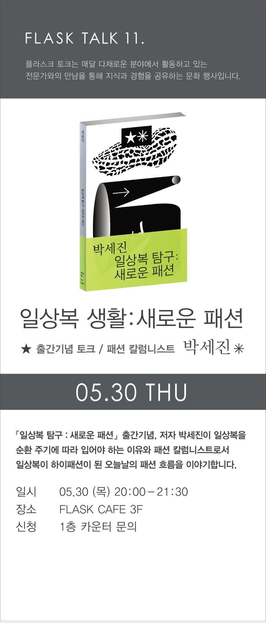 일상복 탐구 : 새로운 패션(링크) 발간을 맞이해 플라스크 명동점에서 북토크를 합니다~ 5월 30일 목요일 밤 8시에 예정이 되어 있습니다.