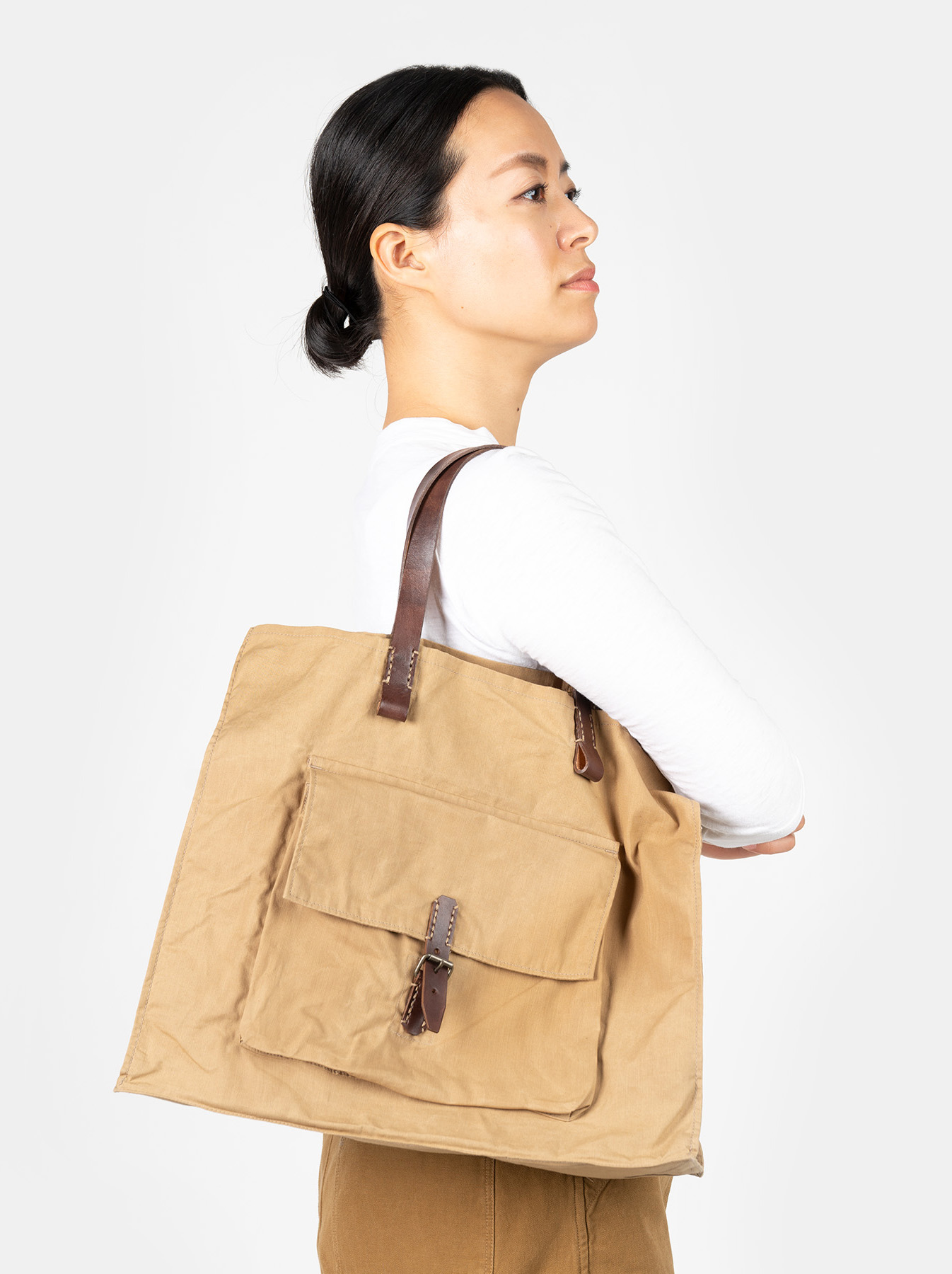 보다시피 이건 손잡이와 주머니 벨트가 가죽이다. 손잡이 끝 부분을 둥글게 처리했는데 참 쓸데없다. 지나친 단순함, 지루함을 방지하고자 취약한 지점을 늘리는 건 좋은 습관이 아니다.