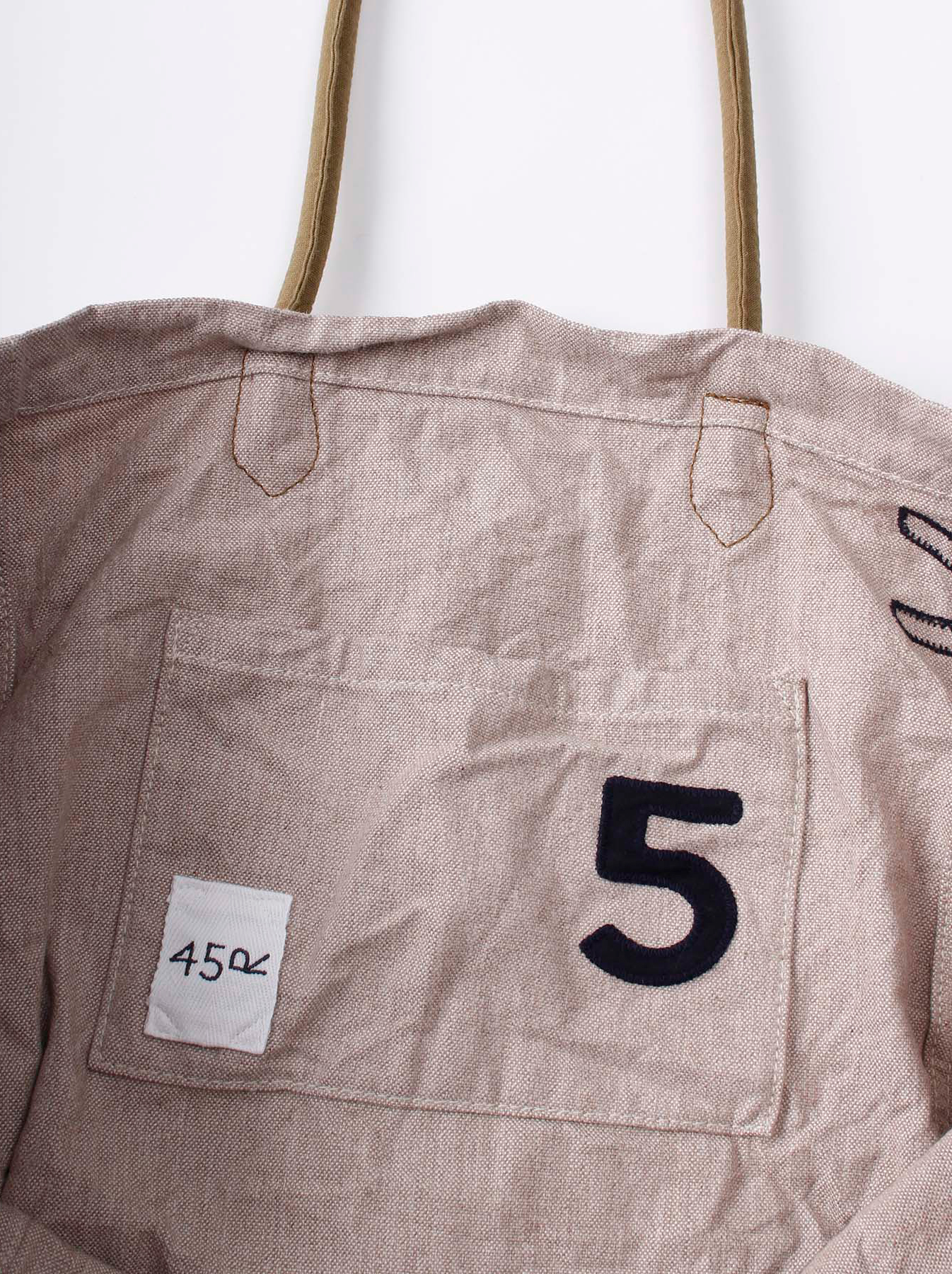똑같은 모양으로 여러가지 재질이 나오는데 리넨으로 만든 건 2만 5천엔 정도, 빈티지 텐트 원단으로 만들었다는 것 중 올리브와 베이지 컬러는 2만 8천엔 정도, 같은 재질인데 인디고 염색이 되어 있는 건 3만엔 정도다. 45R에서 인디고는 브랜드의 핵심에 가까운 가장 중요한 그 무엇이기 때문에 같은 종류라면 대체적으로 가장 비싸다. 어쨌든 이런 식으로 차곡차곡 가격 차이가 난다. 빈티지 텐트 원단이라고 되어 있는데 코튼 100%다. 코튼 텐트 물론 있지... 그나마 텐트로 쓸 거 같은 두꺼운 캔버스 같은 건 아니고 얇고 빳빳한 타입이 아닌가 싶다. 또한 코팅이 되어 있다니 발수 기능 정도는 넣었지 싶다.