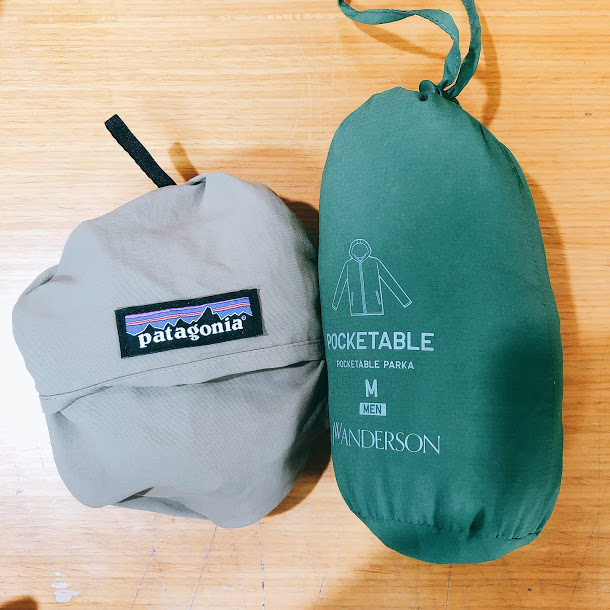 오른쪽에 있는 건 포케터블 파카다. 립스톱 나일론에 DWR 처리가 되어 있는 아주 얇은 아우터다. 미세한 디테일이 약간 다른 단색 제품을 지금도 팔고 있다.