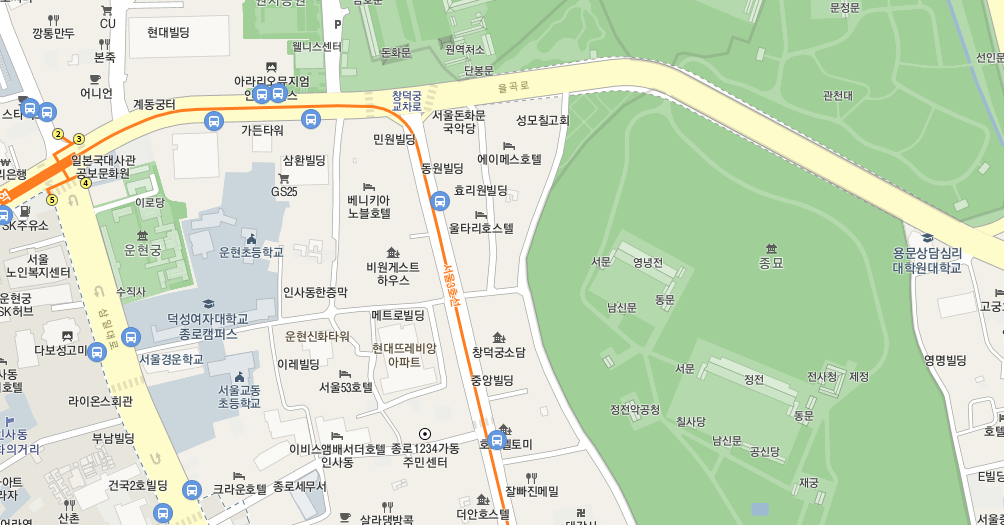 왼쪽 운현궁 주변, 안국역 위쪽 깡통 만두 주변은 싸돌아 다닌 적이 많은데 오른쪽의 옛날 궁의 틈새에 껴 있는 저 곳은 자주 지나치긴 했지만 안으로는 처음 가보는 곳이었습니다. 과거와 지금이 혼재된, 어느 사이엔가 전형적인 모습 중 하나인 서울의 모습이죠. 원래 와룡동은 창덕궁 전체인데 아래 마을이 살짝 포함되어 있습니다. 참고로 맨 위 서울 3호선 라인 바로 오른편의 돈화문 국악당 있는 곳 섹터가 와룡동이에요. 종묘와 사이에 오른쪽에 길이 하나 있는데 거기는 권농동입니다. 그리고 왼쪽으로 가면 운니동이죠.