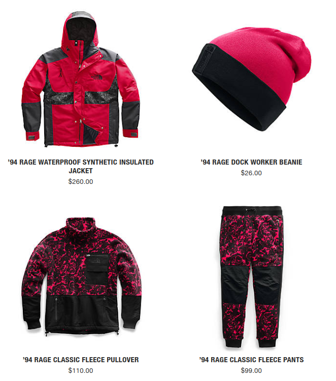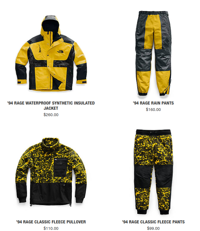 그 다음은 Rage 컬렉션이다. 작년에 레이지 시리즈를 다시 내놓는 걸 보면서 왜 저걸 다시 내놓는걸까 궁금했는데 확실히 미니멀하게 흐르고 있는 노스페이스 전체 컬렉션 속에서 보면 심심하게 흐르는 걸 방지해준다. 이것도 연도별로 나오는 거 같은데 작년에 나온 게 '92 Rage였는데 올해 신제품을 보면 '94 Rage가 있다. 작년에도 있었나? 3번의 드롭 중 하나로 9월 23일 발매 예정인 레이지가 있는데 그건 '92가 아닐까 싶다. 복잡하게 얽혀 있어서 잘 모르겠음.