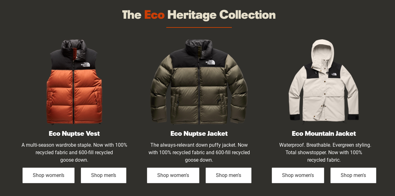 이런 2019 FW 드롭 컬렉션 말고도 기존 제품의 새 컬러, 옛날 컬러 재발매, 신형 재킷 등은 꾸준히 나오고 있다. 특히 REI와의 콜라보로 에코 헤리티지 컬렉션도 내놨는데 100% 리사이클 눕시, 베스트, 마운틴 파카가 나왔다(링크).