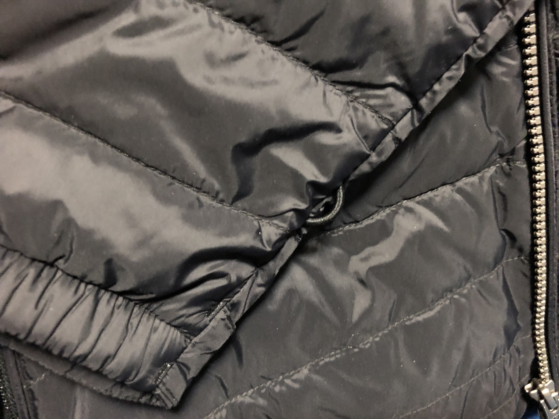 안쪽을 보면 주머니 자리가 보인다. 최근의 노스페이스나 유니클로라면 저 자리에 주머니를 하나 만들어 놓는데 네파는 그렇게 하지 않았다. 안에 주머니 달려 있고 어딘가 이어폰 빼는 구멍이라도 하나 만들어 놓으면 은근 요긴하긴 하다. 특히 라이트 패딩이라면 더욱 그렇다.