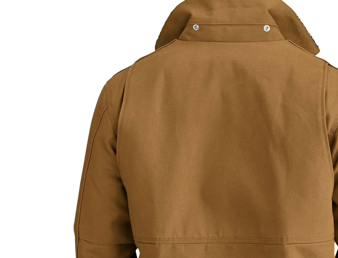 칼하트 홈페이지에 보면 대표 모델 중 하나인 초어 코트의 역사에 대한 설명이 있다(링크). 여기에 보면 단순한 색 재킷 형태였다가 1930년대 들어 몇 가지 변화가 생겼다. 코듀로이 칼라가 붙었고 블랭킷 안감 옵션이 생겼다. 그리고 1954년 바이 스윙 어깨가 붙었다.