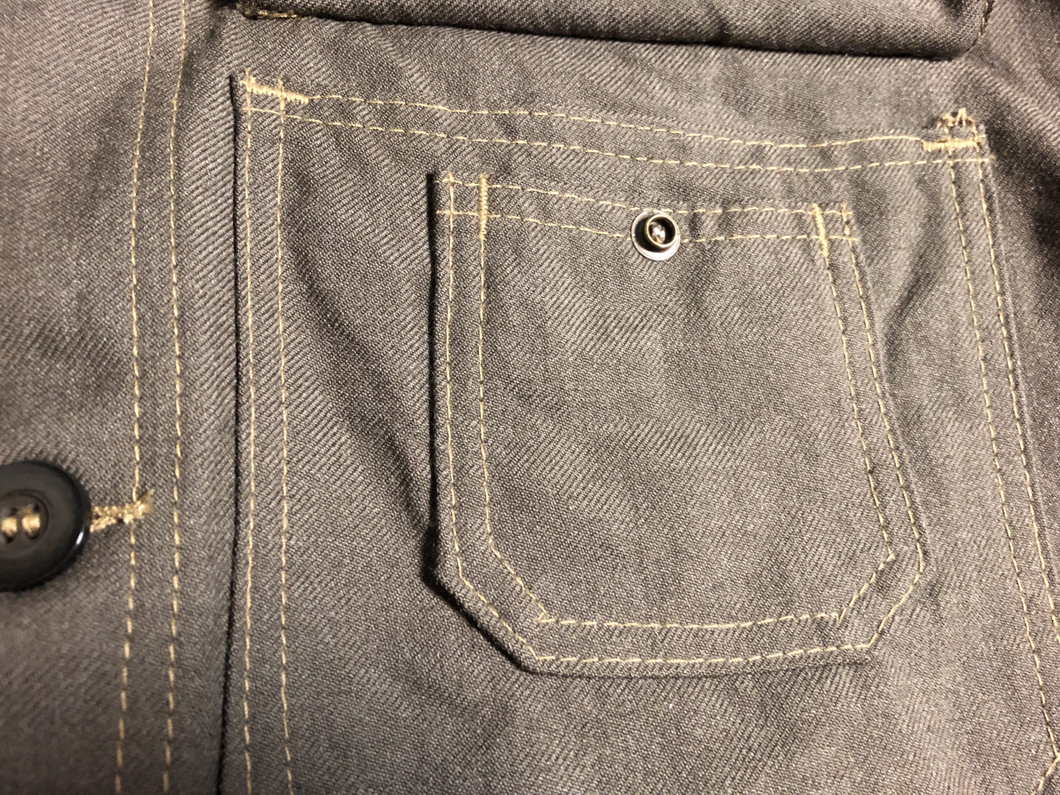 왼쪽 아래 주머니가 현행 매키너 크루저와 다르다. 나침반 같은 게 들어가기 딱 좋은 사이즈의 작은 주머니가 있다. 그리고 주머니 아래쪽도 직각 네모가 아니라 사이드가 꺾여있다. 스티치가 재미있음. 사실 이 아래 주머니에 약간 불만이 있는데 우선 매키너 크루저처럼 사이드 주머니가 따로 없다. 그게 가끔 있으면 좋겠다고 생각날 때가 있다.