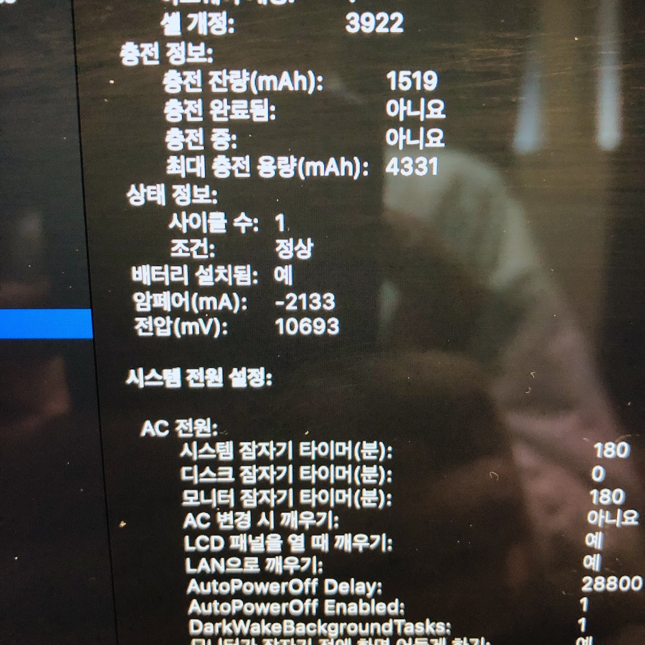 이게 키보드 리콜을 하면 키보드, 팜 레스트, 트랙패드, 스피커, 배터리, 터치바 디스플레이까지 모조리 교체된다. 사실 생긴 게 그다지 다르지 않으니까 다른 부분은 잘 모르겠고 배터리 사이클은 1이 되었다.