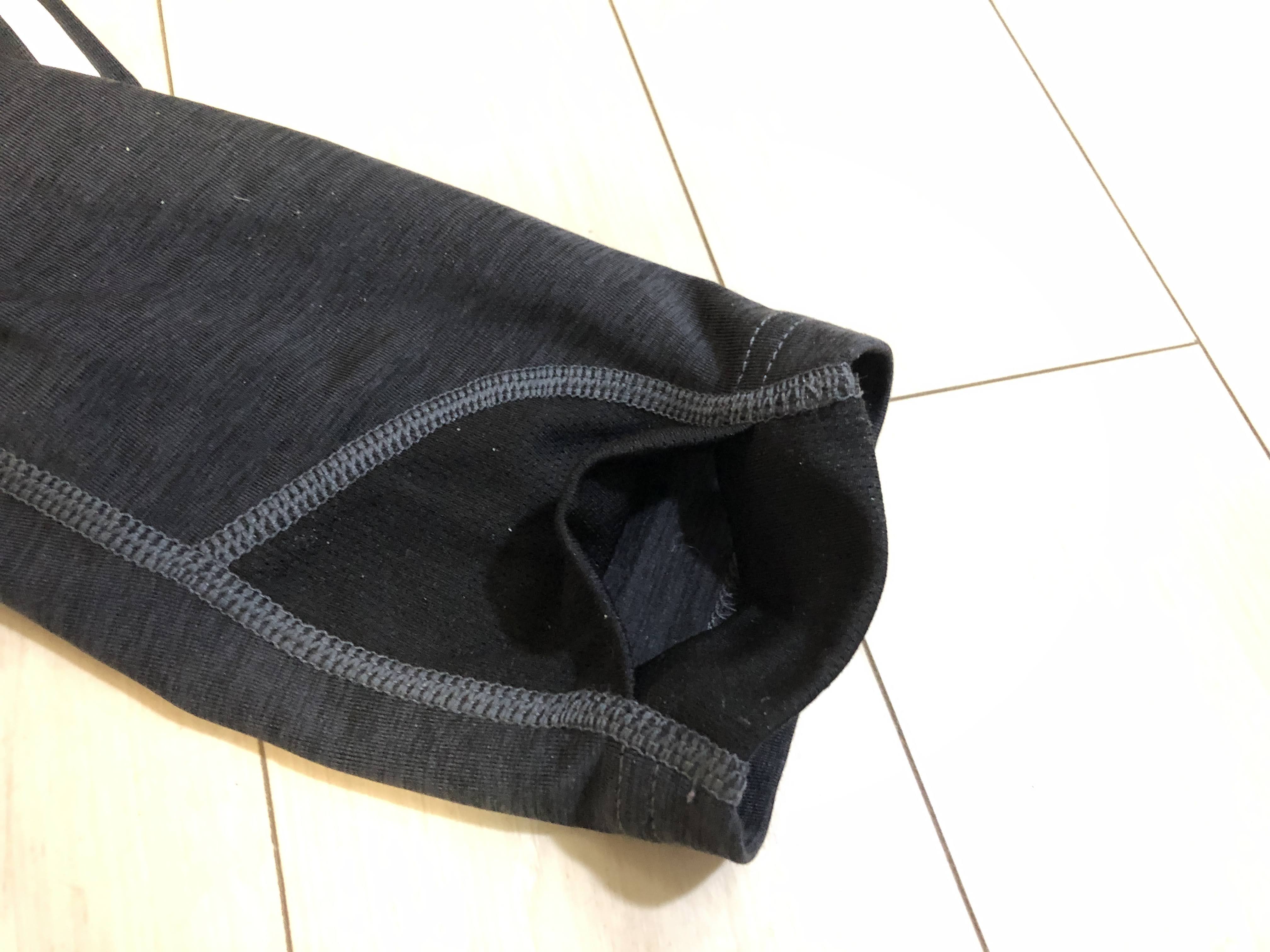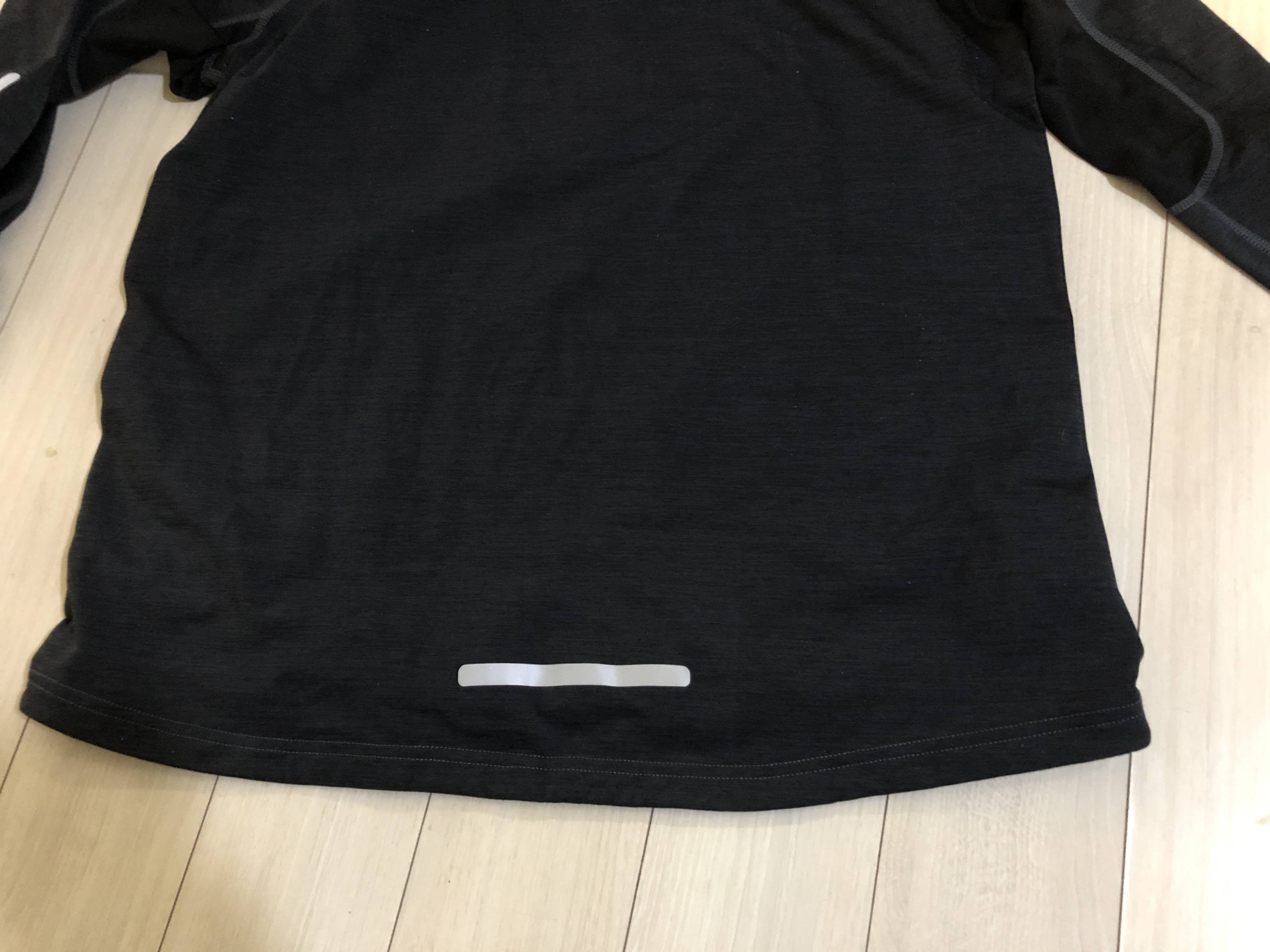 전체의 모습은 전형적인 러닝 탑. 옷을 보면 캠핑 - 등산 - 러닝 - 자전거 순으로 몸에 달라붙는다. 달리기는 맨몸으로 도심 속에 던져지는 거기 때문에 보통 반사판이 여기저기 붙어 있다. 특히 이런 까만 옷은 정말 안 보이니까 번잡한 도로 근처는 가지 않는 게 좋다. 그런 데는 형광색 옷에 안전등도 달고 가세요.