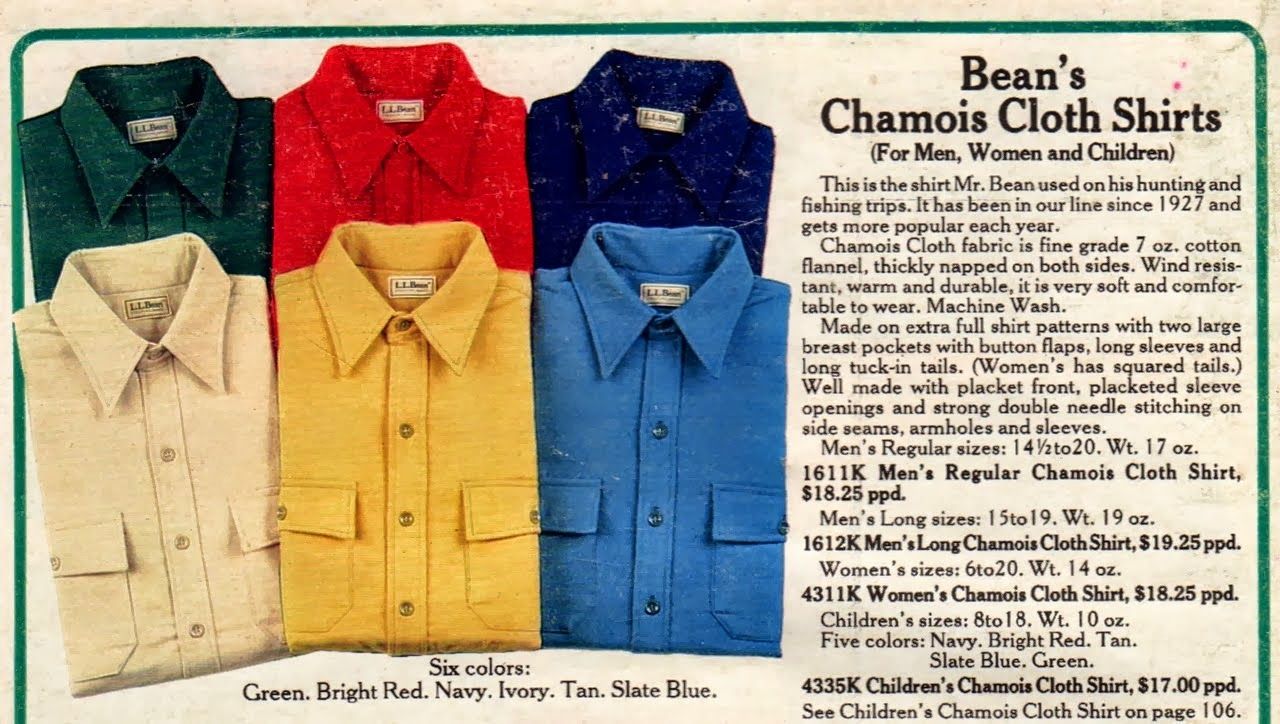 샤모아 셔츠가 처음 나온 건 1927년으로 그때는 레더렛 셔츠(Leatherette Shirt)였고 1931년에 샤모아 클로스 셔츠라는 이름이 붙었다. 거의 100년이 되어 간다. 샤모아 클로스를 사용한 셔츠는 엘엘빈 특유는 아니고 울리히 등에도 있다. 오래되긴 했음.