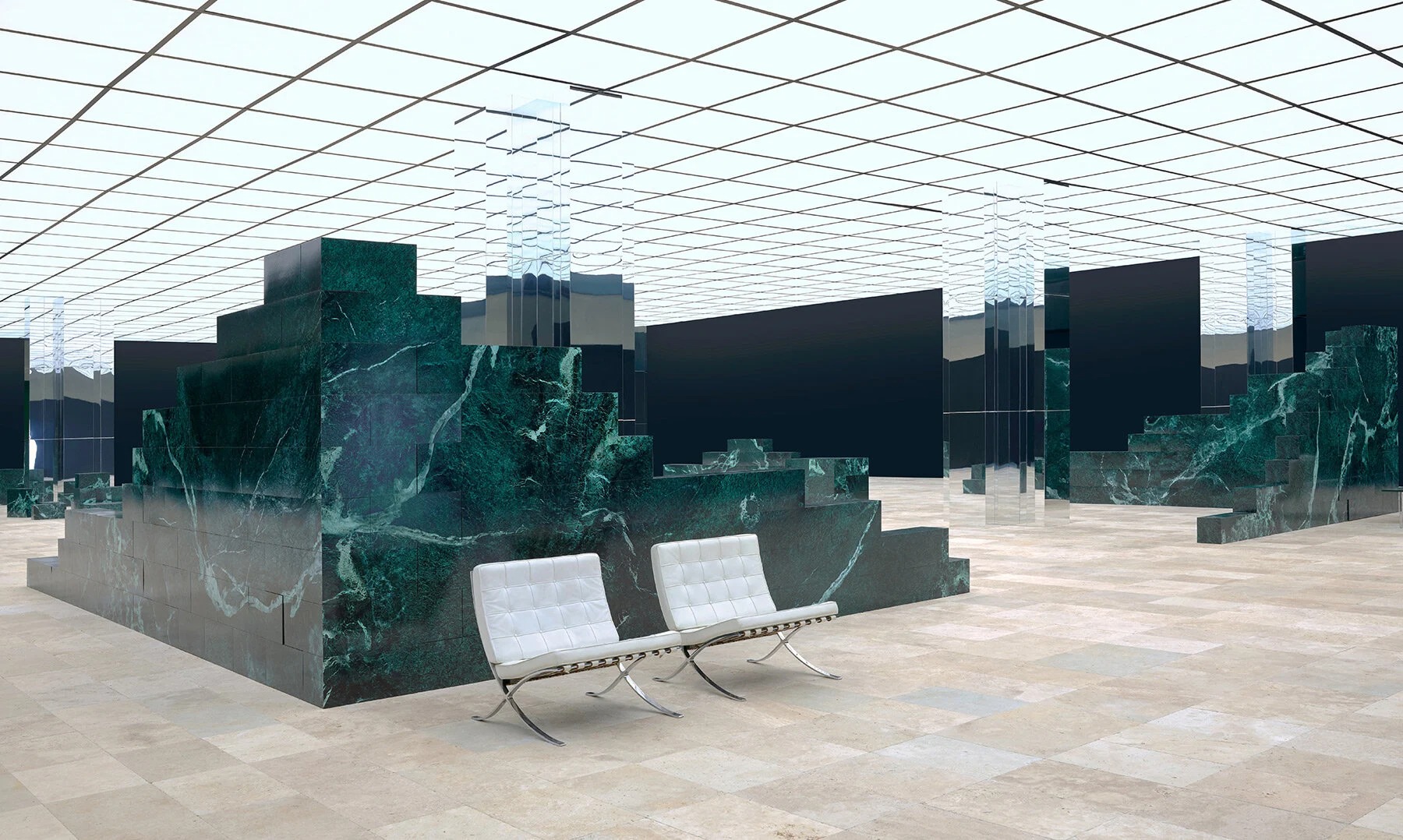 몇 년 전부터 미스 반 데어 로에 이야기를 부쩍 하더니(링크) 스테이지에도 끌어들였다. 앞 사진은 바르셀로나 파빌리온. 혹시나 싶어 의자도 가져다 놓은 건가 싶어서 좀 재미있긴 했다.