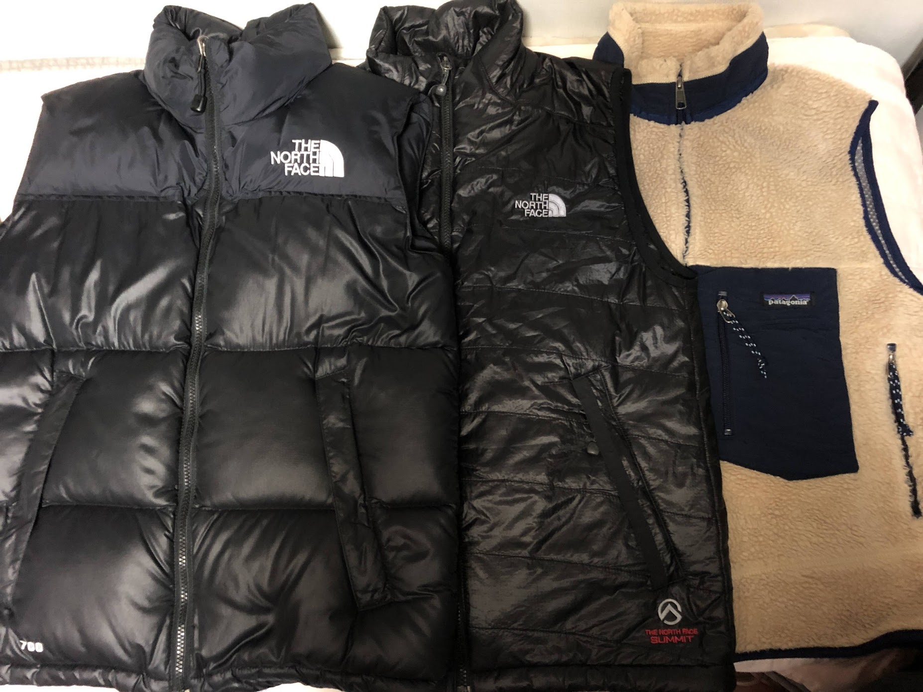 맨 왼쪽은 예전 노스페이스의 일본판 눕시 다운. 가운데는 프리마로프트, 맨 오른쪽은 방풍 플리스. 사실 보일러를 아끼는 실내용으로는 눕시가 가장 잘 맞고 가운데는 가벼운 합성 충전재 제품이라 등산, 운동에 잘 맞는다. 레트로 x 베스트는 눕시가 지겨울 때, 아니면 밤에 자기 전 이건 대체 어디에 쓰면 좋을까 할 때 입어본다.