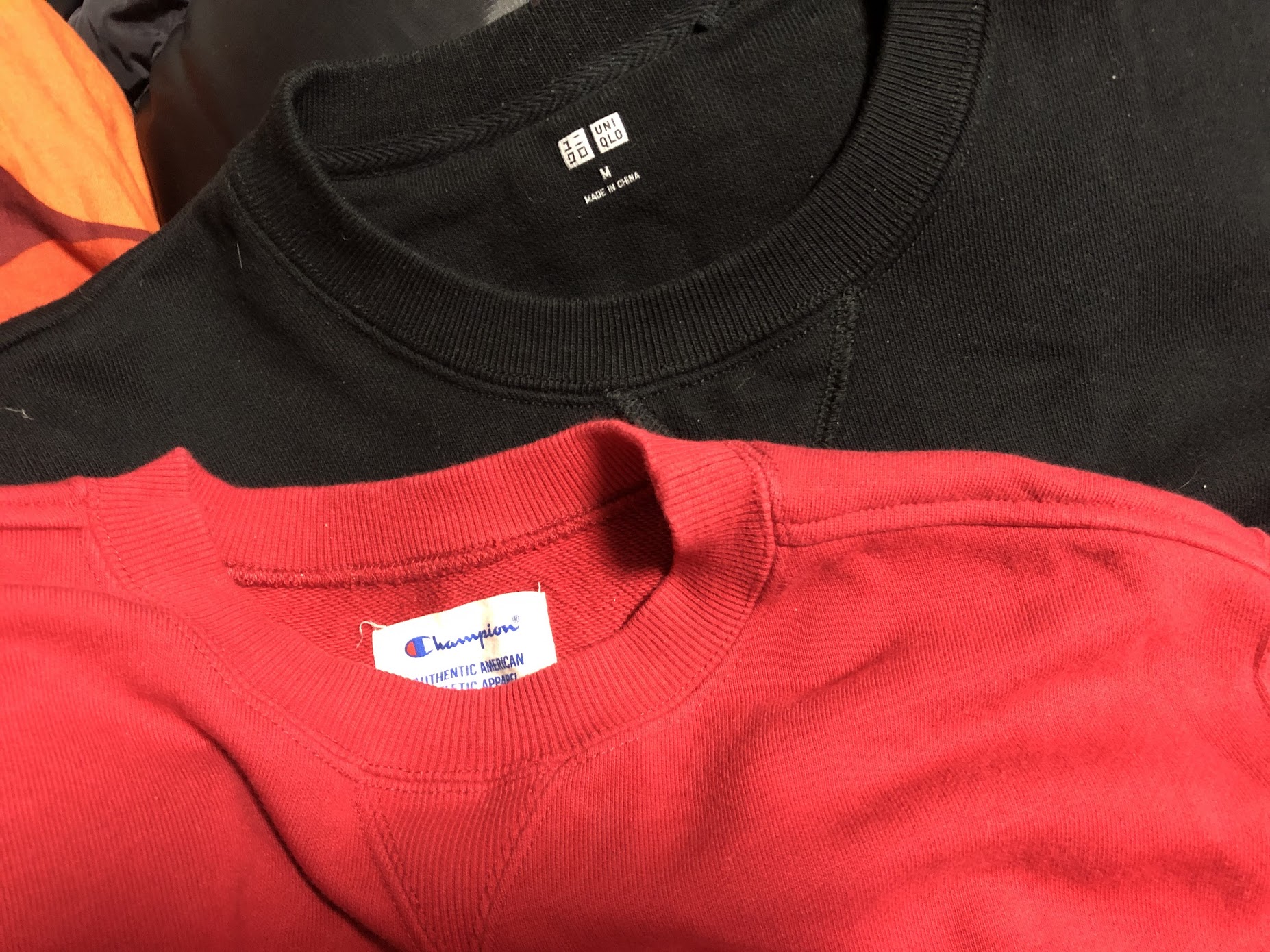 며칠 전에 재택 근무가 늘어나면서 패딩 베스트를 입는 날이 많아졌다는 이야기(링크)를 한 적이 있다. 그렇다면 그 안에는 뭘 입느냐 하면 바로 스웨트셔츠다. 이 옷은 스웨트라고도 한다. 사실 이름이 꽤 많은데 예컨데 점퍼라고 하는 데도 있고 크루 넥이라고 하는 데도 있다. 하지만 점퍼나 크루넥은 정확히 면 크루넥 스웨트셔츠를 가리키는 말은 아니다.