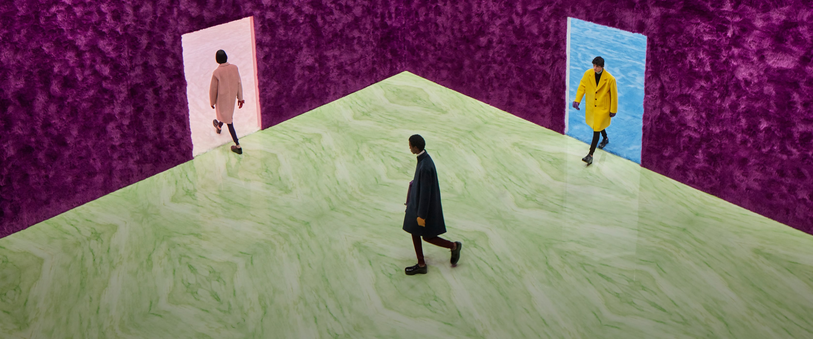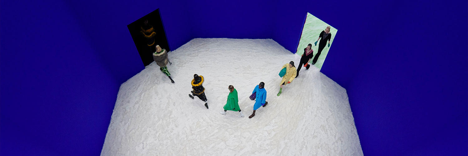 프라다의 FW21 여성복 패션쇼가 2월 25일에 있었다. 이건 1월 17일에 있었던 남성복 FW21과 함께 보는 게 좋을 거 같다. 일단 장소가 거의 같다. 물론 남성복에 나왔던 빨간 방은 없고, 여성복에는 마블 대리석 바닥이 더 있는 것 등 약간의 디테일 차이는 있다. 렘콜하스가 어떤 강조점을 가지고 이런 다름을 설계했는지는 모르겠다.