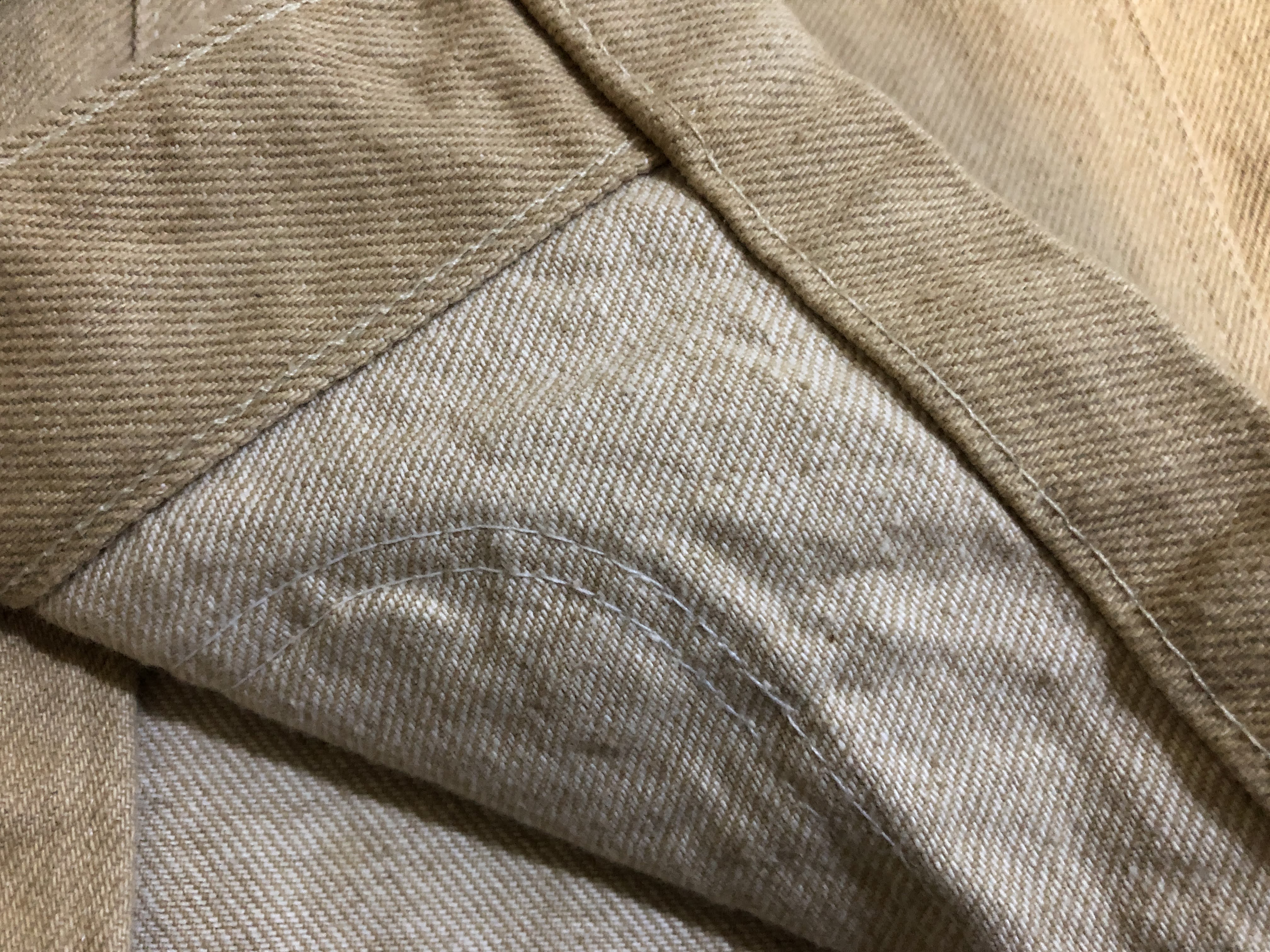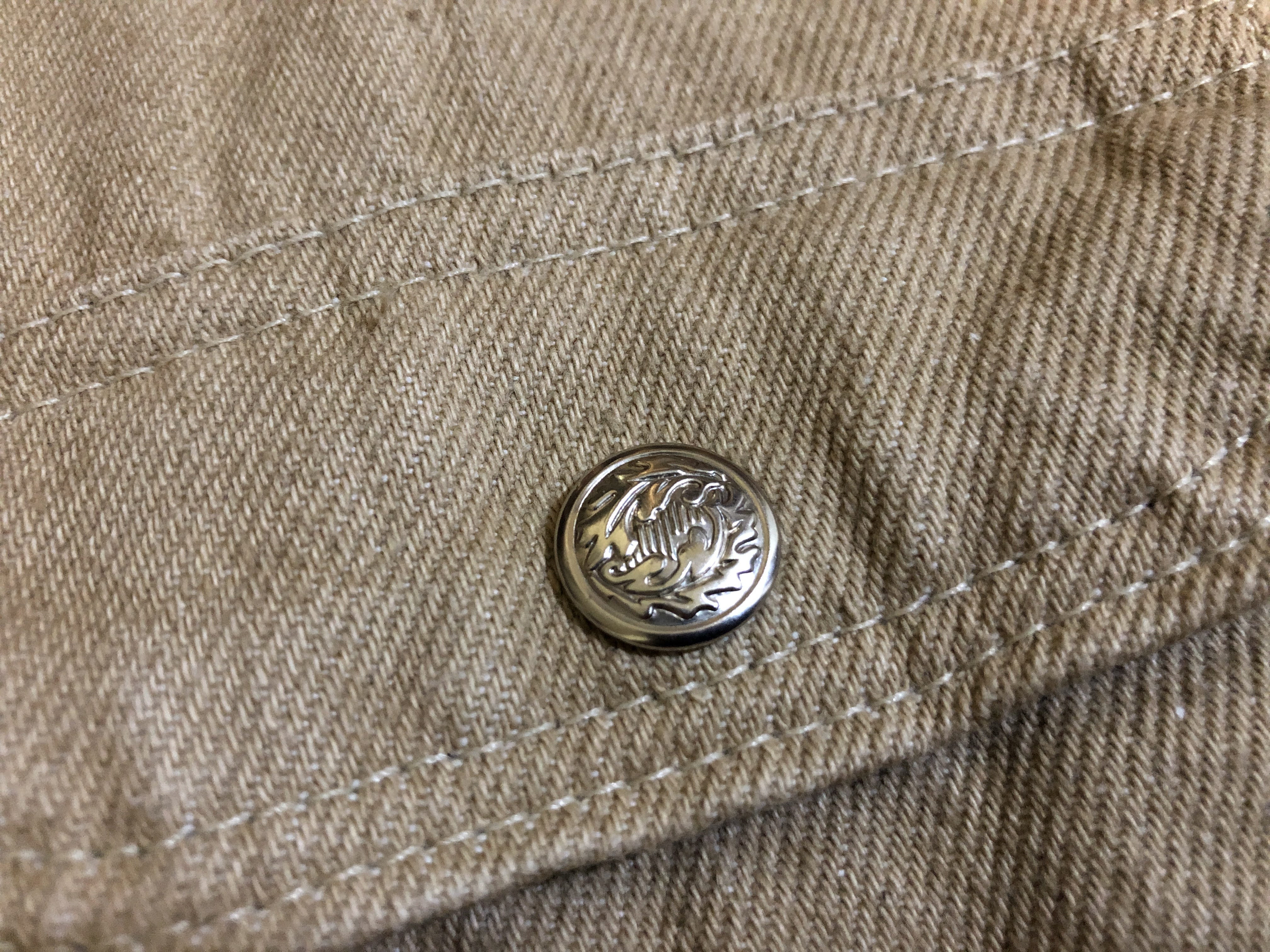 이게 덕 버전. 크게 보면 덕은 플레인 위브, 데님은 트윌 위브인 점이 다른데 그래서 덕 버전은 옷의 겉, 안 속이 같다. 데님도 같게 할 수 있긴 할텐데... 뭐 아무튼 그렇다. 위에 보이는 버전은 가슴 포켓에 포인터 그려져 있는 로고에 단추 위에 초록색 글자 각인 버전으로 약간 예전에 나온 타입이다.
