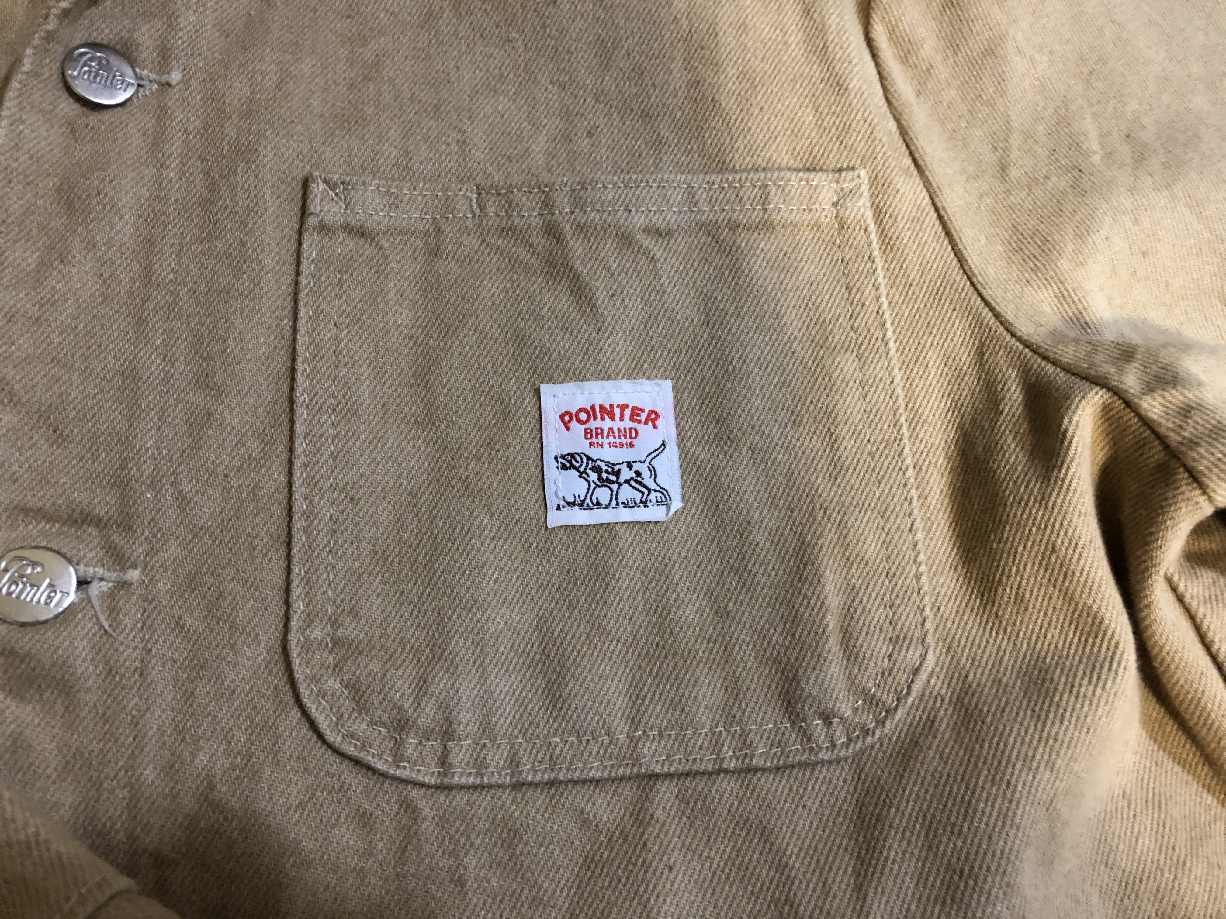 포인터 브랜드가 생긴 건 고만고만한데 디테일한 부분이 계속 바뀌었다. 단추가 복잡한 무늬(예전에 시어스 등등 워크웨어에서 많이 볼 수 있는)에서 포인터 글자 각인으로 바뀌었고 사이즈 단위가 36, 38, 40에서 S, M, L로 바뀌었다. 라벨도 몸 안 쪽에 있다가 목 뒤로 갔고. 이런 것들을 보고 시대를 추정할 수도 있을텐데 아주 관심이 있는 사람이 아니라면 포인터 브랜드의 시대 측정은 딱히 큰 의미는 없는 듯.