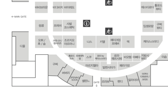 아래 구찌, 버버리, 셀린 그리고 마르지엘라, 발렌시아가 있는 곳인데 고속터미널 호남선으로 가는 문이 있는 곳이었다. 아주 교묘하고 스무스하게 공간을 만들어 놓고 자그마한 매장을 잔뜩 집어 넣었다. 대신 이 부분만 천장이 약간 낮은 분위기. 아무튼 여긴 대체 뭐였더라 한참 생각했다.