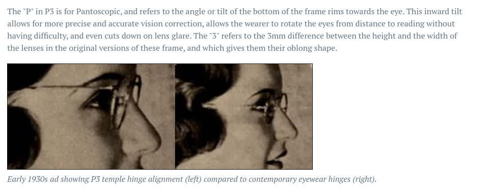 아무튼 안경에 대해 잠깐 살펴보다 보니 소위 미국형 안경 형태인 보스턴 안경을 P3라고 부른다는 사실을 알게 되었다. P는 판토스코픽, 광각, 넓은 시야를 뜻하고 3은 3mm.