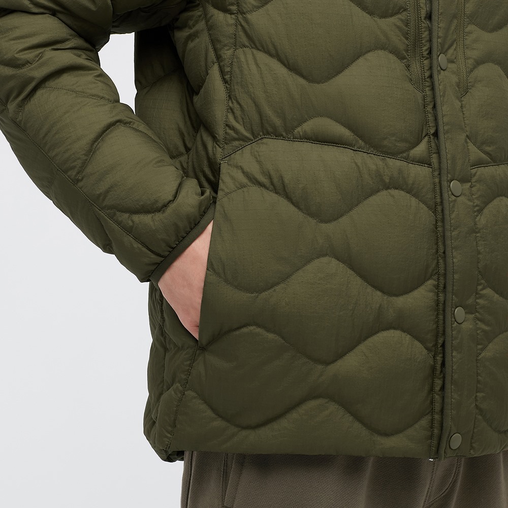 플리스 자켓은 나는 좀 별로였고 - 가운데 라인을 따라 뭔가 있는 걸 하나같이 좋아하지 않는다 - 재미있다고 생각한 건 라이트 다운. 전형적인 내피 디자인이다. V형 넥인데 요새는 아우터로 입는 경우가 많아서인지 이런 옷이 목이 좀 높게 나오는 게 아닌가 생각하고 있다.