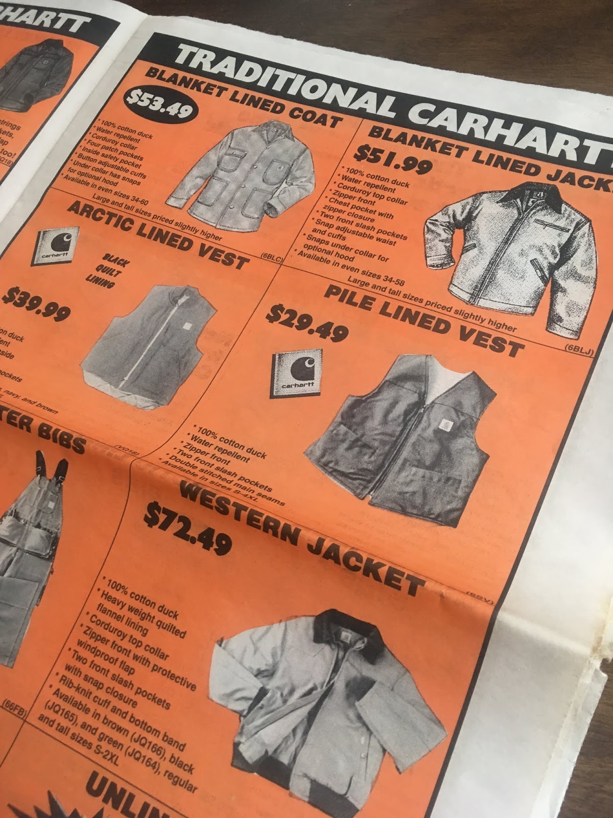 옛날 카탈로그 뒤적거리는 걸 좋아한다. 그렇다고 딱히 체계적으로 접근하는 건 아니고 우연히 어딘가에서 마주친다, 이러이런 게 나왔었네... 하고 구경하는 정도다. 역시 이런 종류는 파타고니아, 칼하트, 필슨 같은 브랜드가 재미있는 데 과거의 가격, 과거의 기능성 등등에 대한 설명이 꽤 재미있고 특히 워크웨어 브랜드 류는 새삼 예전이나 지금이나 변한 게 하나도 없군... 이라는 생각이 들기 때문이다. 오늘은 칼하트의 90년대.