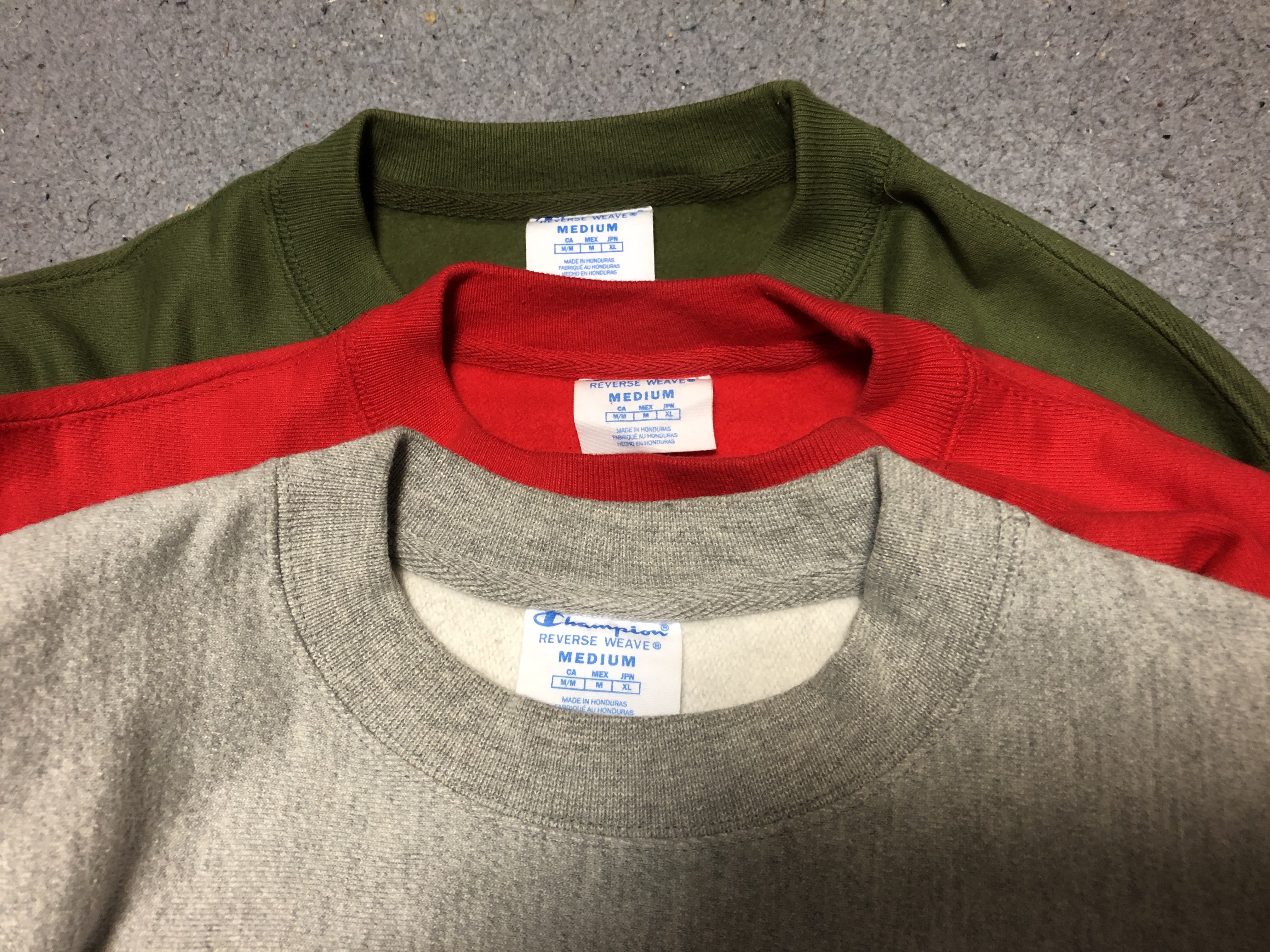 2. 챔피언은 상당히 이상한 식으로 영역을 확장하고 있다. 다 똑같이 생긴 거 같은 데 종류가 무지하게 많다. 당장 팔리는 것만 봐도 미국판, 아시아판, 유럽판이 있고 거기에 ECO, 리버스위브, 빈티지 미국 제조, 일본발 미국 제조 리버스위브, 8온스, 12온스, 면 100%, 혼방, 로고가 가슴에 없는 거, 있는 거, 큰 거, CHAMPION이라고 적혀 있는 거, 크게 적혀 있는 거 등등 끝도 없다. 거기에 대학 로고, 회사 로고, 운동팀 로고, 뭔지 모르겠는 로고 등등도 있다. 다들 미묘하게 다르다. 아주 천천히 마음에 드는 것 혹은 찾고 있는 게 나타날 때까지 정진해야 하는 영역이고 그런 걸 만나지 못할 가능성도 있고 만나도 아주 비쌀 가능성도 있다. 그런 걸 셋업으로 찾는 건 사실 미친 짓의 영역이다.