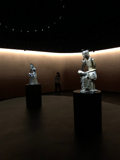 패션이 아닌 이야기. 국중박(이라고 하더만)에 사유의 방이라는 게 오픈했다는 소식을 꽤 예전에 들었는데 이제야 다녀왔다. 반가사유상 두 점이 놓여있는 커다란 방이다. 어두운 복도, 큰 방, 기울어져 있는 벽, 반짝거리는 천장 등 여러가지 장치들이 놓여있다. 마음에 들었던 부분은 마루 바닥. 건축가 최욱이 디자인했다고 적혀 있다. 박물관으로서는 흥미로운 시도다.
