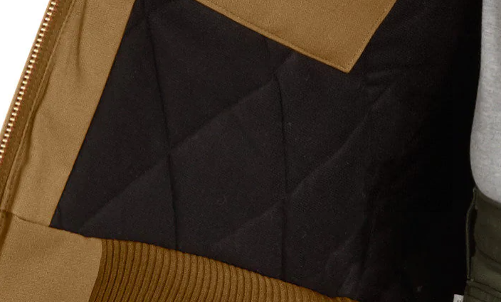 칼하트의 덕 액티브는 펌 덕이라는 코튼을 겉감으로 쓰고 위 생긴 모양은 같은 상태로 내부에 뭘 쓰느냐에 따라 여러가지로 갈린다. J130이나 J131 같은 써멀 라인드가 가장 유명하고 써먹을 데도 많다. 플란넬이 아닌 인설레이티드도 있다. 칼하트 워크웨어의 안감에 따른 보온력 차이는 아래 영상을 참조.