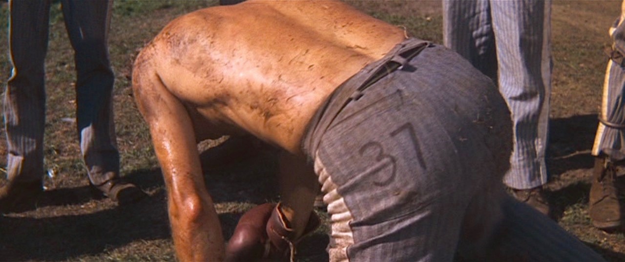 자세한 장면을 보면 그냥 흰 천인데 직물의 차이에 따라 주름처럼 보이는 거 같기도 하다. 엉덩이에 루크의 죄수 번호인 37번이 적혀 있다.