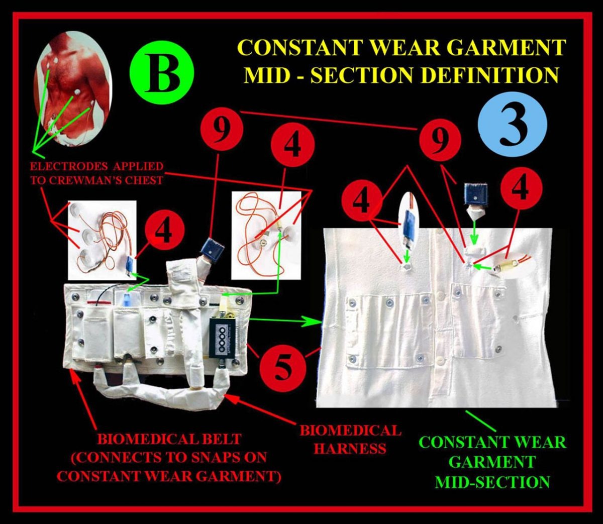 뭐 저거야 미래 상상이니까 요새 저런 면 섬유를 입을 거 같지는 않고 찾아보니 LCVG라는 롱존스 언더웨어를 입는다고 한다. 리퀴드 쿨링 앤 벤틸레이션 가먼츠(Liquid Cooling and Ventilation Garments)로 수냉에 가스 벤틸레이션이 들어 있다고 함. 편안함이나 청결, 배변의 편의보다는 생존에 더 큰 방점을 두고 있는 거 같다.
