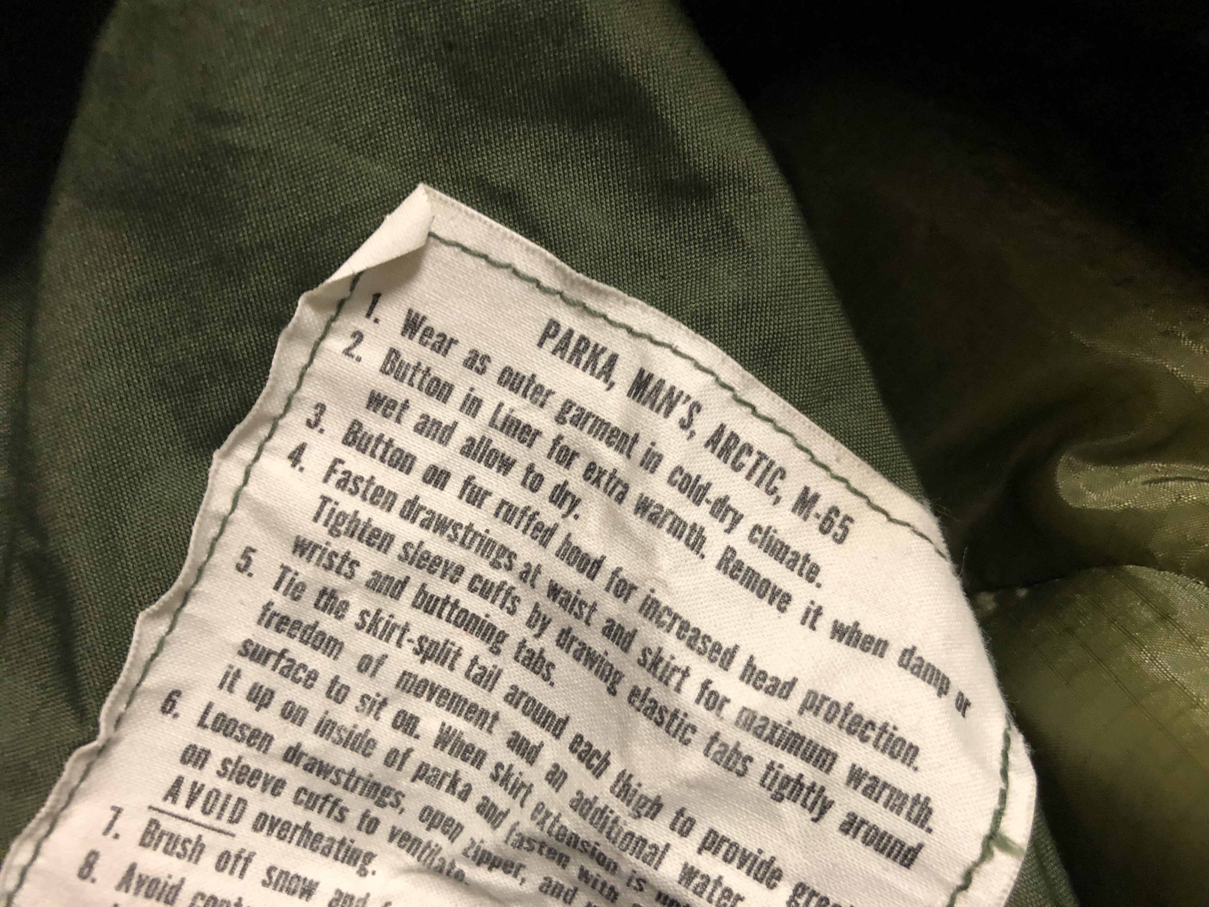 그리고 M-65 표기. 역시 70년대 들어서 M-65라는 이름이 사라지고 ARCTIC PARKA라는 이름만 남게 된다.