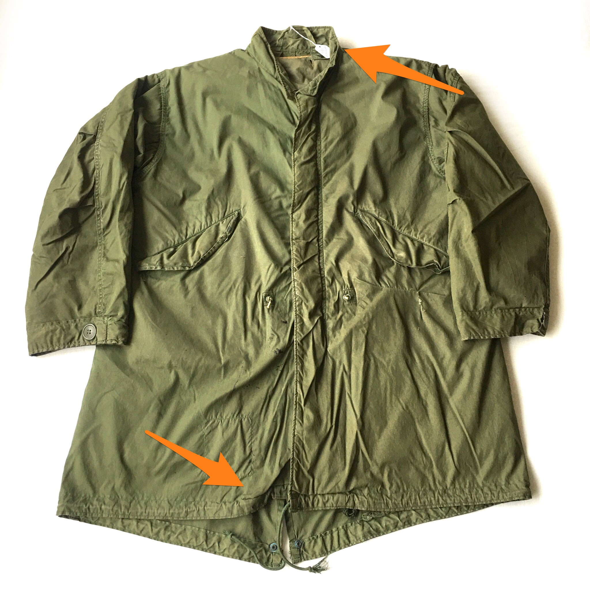 이 사진에서 아래 화살표 부분. 위 파카는 검색해서 찾은 거. 방이 좁아서 전체 사진을 찍기가 좀 어렵다. 위 사진을 보면 오른쪽 가슴에 이름표 붙이는 자리 즈음에 있는 네모가 없다. 그거 좀 거슬림. 그것도 70년대 들어 생겼다.