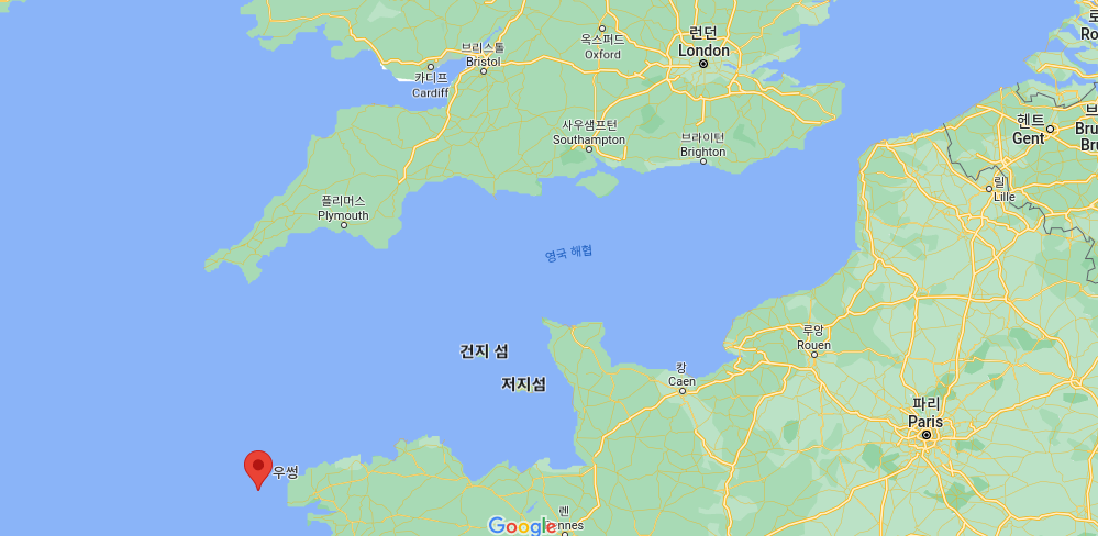 왼쪽 아래 보이는 섬이 우쌍임. 건지, 저지 같은 익숙한 이름도 보인다.