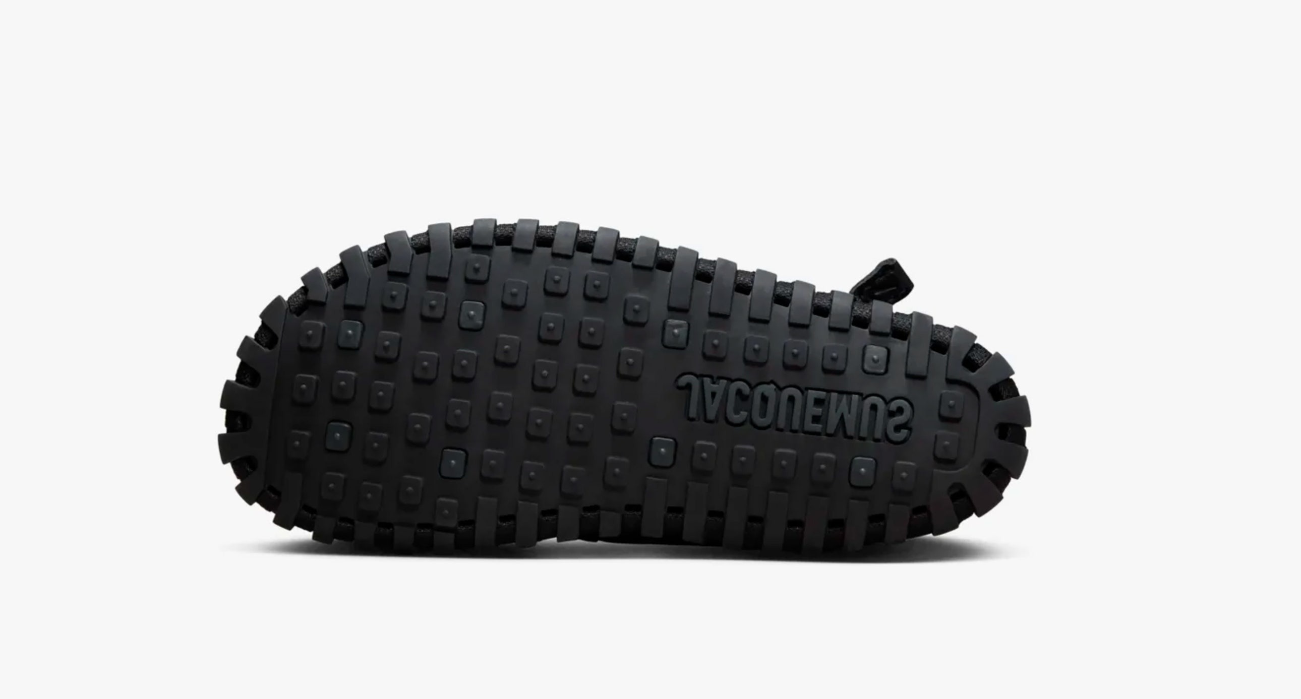 위 사진은 왜 반대로 되어 있는지 모르겠지만 JACQUEMUS가 반전되어 양각으로 찍혀 있다. 신발 자국에 JACQUEMUS라고 적히게 되는 걸 노리고 있다.