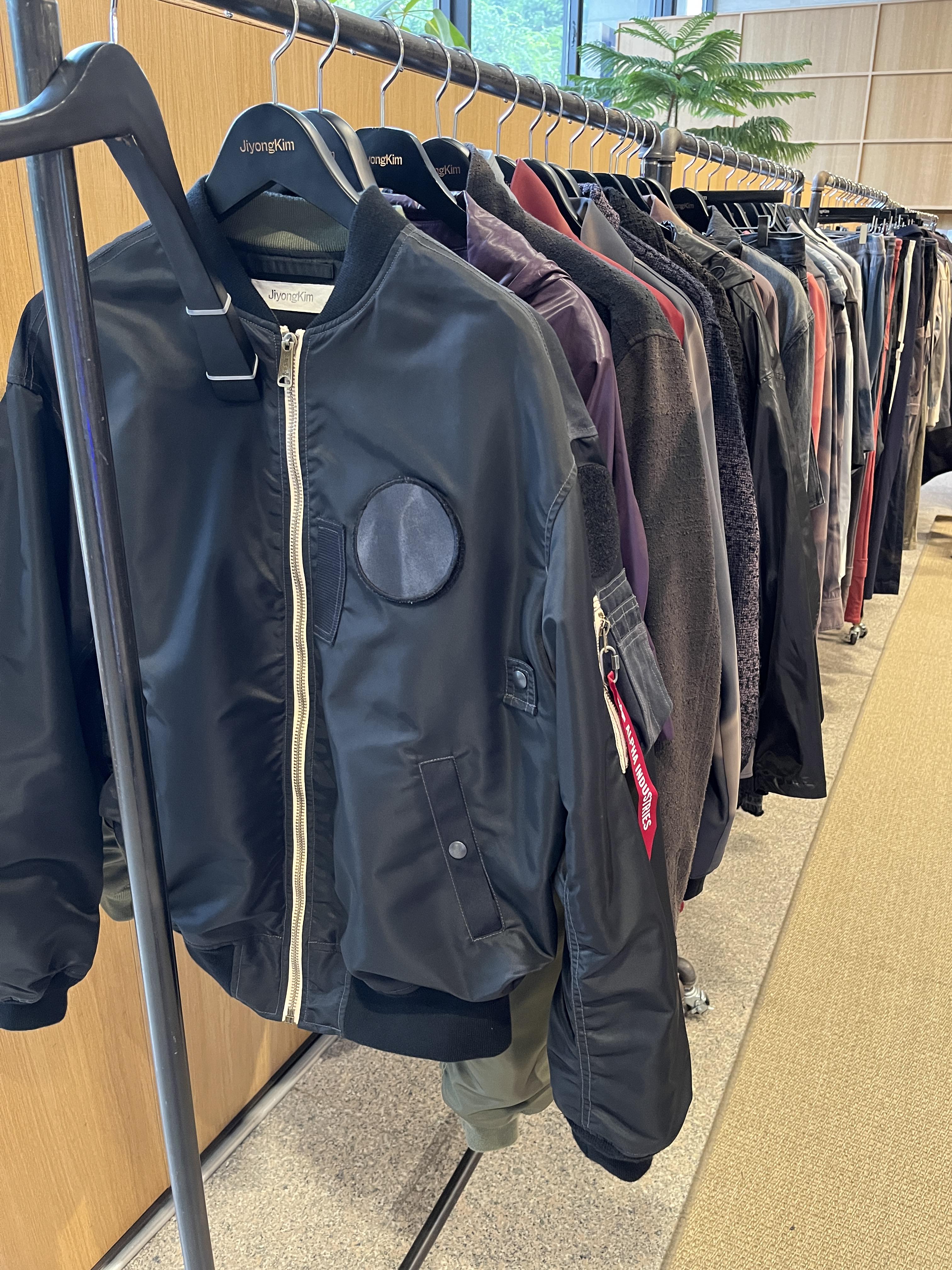 또 하나 궁금했던 건 이렇게 멋진 아이디어로 시작된 브랜드는 좋은 평가와 관심 속에서 필연적으로 확장의 지점을 만나게 된다. 풀 컬렉션으로 확장을 해 나갈 때 모든 걸 선블리치로 뒤덮을 지 아니면 특유의 미감을 발전적으로 계승할 방법을 찾아낼 지 같은 문제다. 이번 시즌 프리젠테이션 속에서 몇 가지를 찾을 수 있었다. 예를 들어 자외선 대신 페이딩을 이용한 데님. 위 링크에서 볼 수 있듯 데님은 자외선을 잘 버티지 못하고 아마도 그래서 제품들 중에 잘 안 보이는 게 아닐까 생각했었는데 이번에는 있었다. 그리고 몇 가지 있던 알파 인더스트리와의 협업 제품도 블리치 된 패치를 장식의 방법으로 사용하고 있다. 저 뒤의 베스트 - 재킷 2웨이 보라색 옷도 상당히 재미있었음.