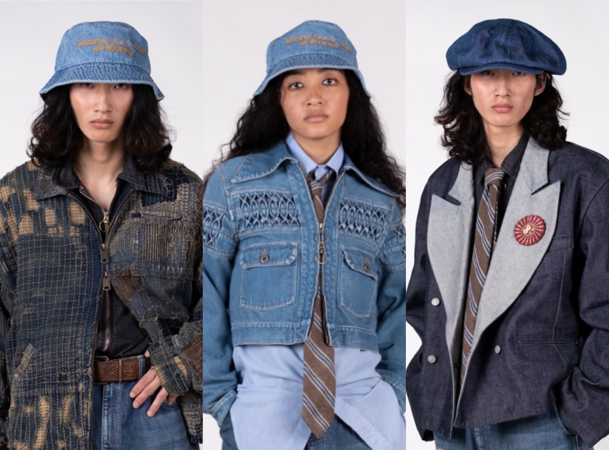 지용킴의 2024SS 이야기(링크)를 한 김에 생각나서 덧붙여 보는 세계관 확장의 이야기. 딱 들어맞는 건 아니지만 그냥 떠올라서 카피탈(Kapital)과 보디(Bode)다. 중고 재현으로 시작된 카피탈은 청바지와 데님에서 곧바로 떨어져 나가며 천연 염색이라는 전통 장인의 이미지를 로고의 손과 모노즈쿠리라는 개념으로 내면화하면서 거기에 보로, 와비사비를 섞어 미국의 보헤미안 히피를 끼얹는다. 그리고 이렇게 시작된 거의 거지의 옷은 에릭 크바텍의 룩북과 함께 전세계에서 비슷한 생각을 하고 살아가는 자발적 혹은 강요된 배거본드와 방랑자와 카피탈 사이에서 발란스를 찾는다.