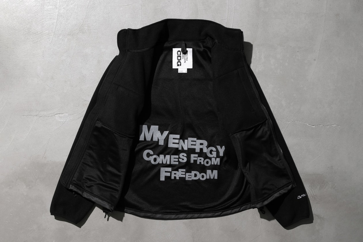 데날리, 눕시 베스트 등 노스페이스 전통의 아이템 블랙 버전에 노스페이스와 CDG 더블 로고, 안감에 WEAR YOUR FREEDOM 문구 등으로 포인트를 만든 컬렉션이다. 이외에 티셔츠, 모자, 바지 등등 있다. 문구가 안감에 들어있어서 룩북을 보면 뒤집어 입고 있더만. 새로울 게 딱히 없는 다 예상할 만한 컬렉션이지만 그래도 누구나 찾고 있는 게 이런 거 아닐까 싶다.
