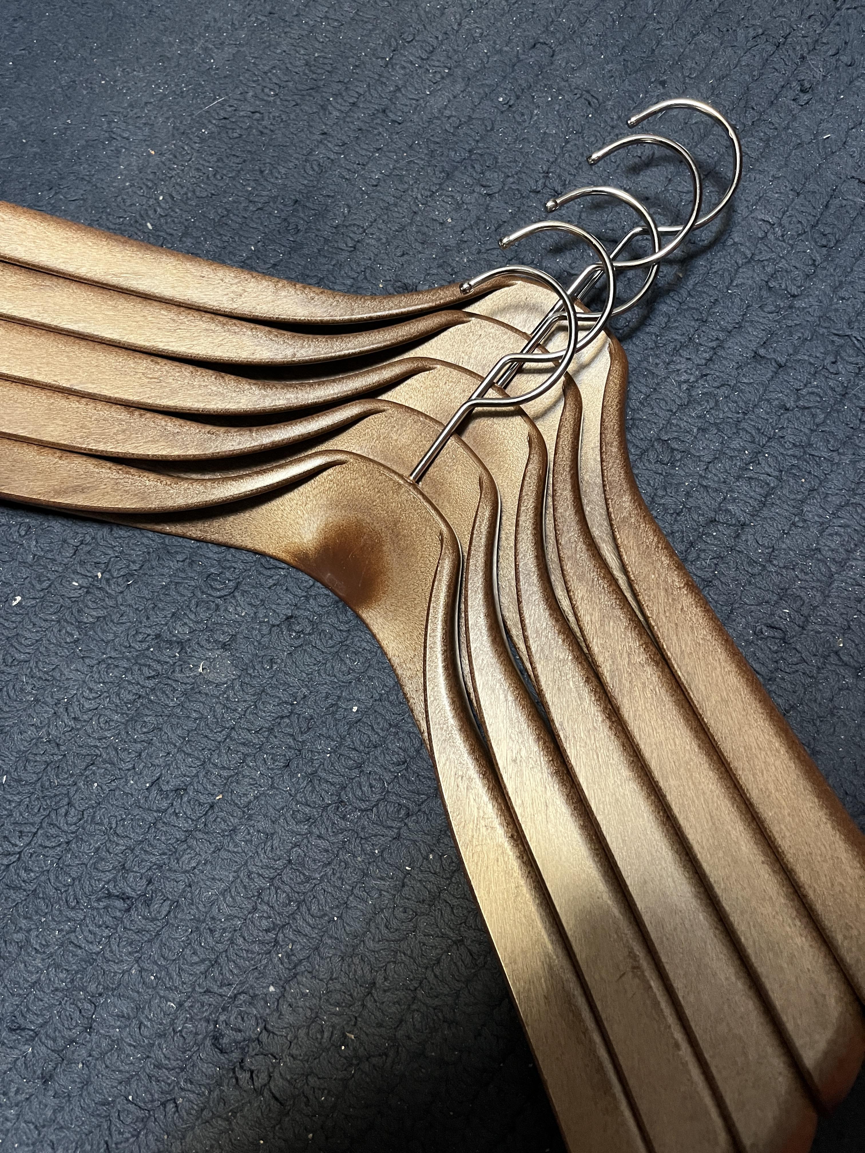아주 예전에 다이소에서 옷걸이를 대량으로 구입한 적이 있다. 20년 쯤 된 듯. 살 때마다 왠지 조금씩 다른 거 밖에 없어서 똑같지 않은 문제가 있긴 하지만 여태 부러진 건 하나도 없다. 그래서 최선은 아니지만 필요하다는 생각이 들진 않은 상태가 계속 되었다. 그리고 코트나 블레이저 등은 어디선가 생긴 두툼 옷걸이를 사용중이었다. 그러던 어느날 옷 걸려있는 행거를 가만히 보고 있는데 노스페이스의 폴리에스테르 자켓 하나 어깨가 울퉁불퉁하고 색도 변해 있었다. 잘 맞지 않는 얇은 옷걸이를 사용하다 보니 생긴 문제인 듯.