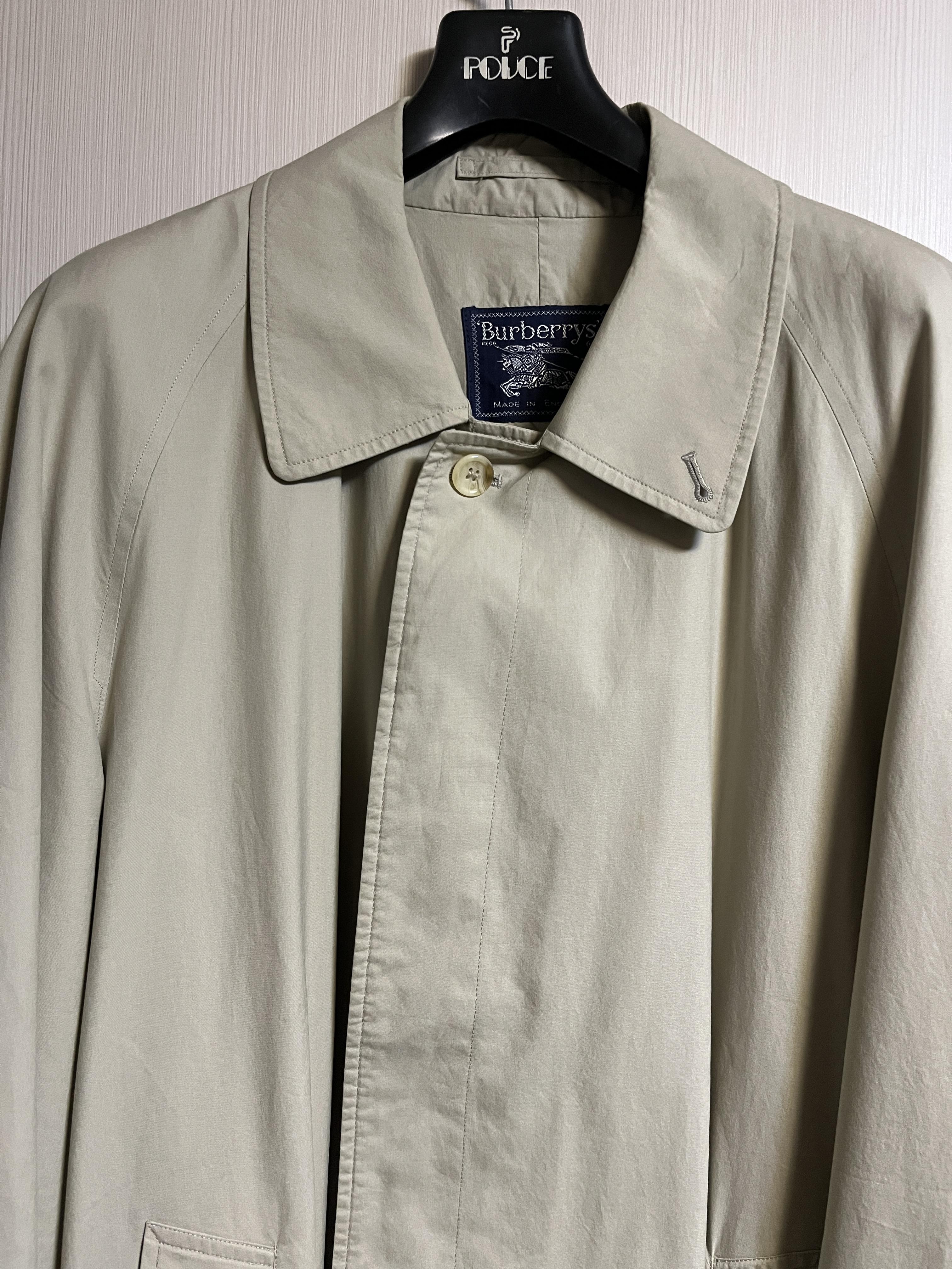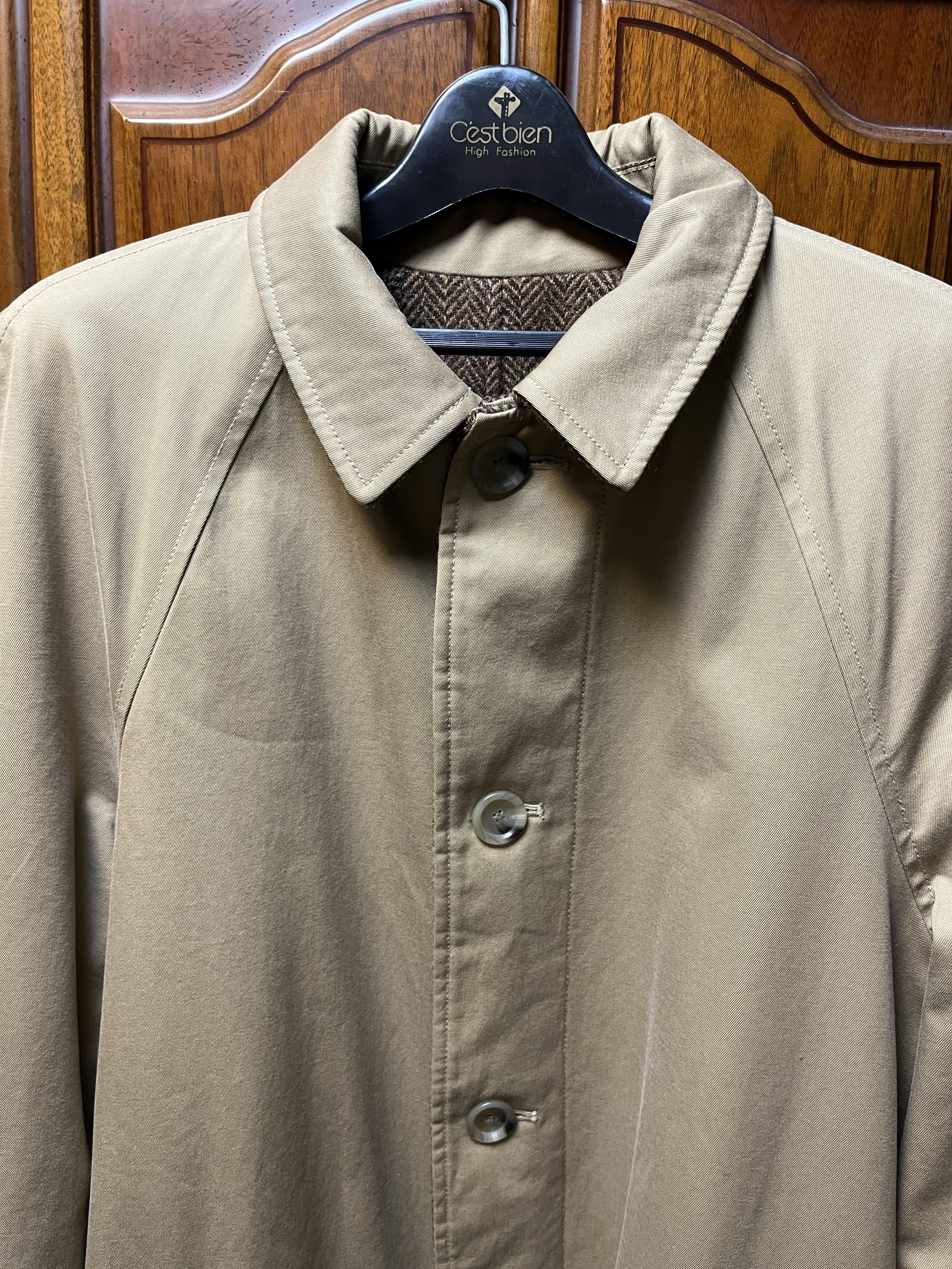 버버리의 코튼 싱글 라글란 코트. 포플린 코튼이고 안감에 타탄 무늬가 없는 민무늬다. 일본에서는 無双(双는 雙의 일본식 표기다. 중국도 이렇게 쓰네. 우리말로는 무쌍, 일본어로는 무소라고 읽는 거 같다) 원단이라고 하던데 지칭하는 용어가 따로 있는지는 모르겠다. 91년 제조판이다.