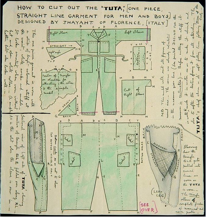 타이야트(Thayaht)는 1900년대 초반 이태리 미래파 운동에 참여했던 예술가이자 디자이너인 에르네스토 미카헬레스의 가명이다. 그는 1919년 저렴하고, 바느질과 재단이 쉽고, 원단 낭비가 최소화되고, 모든 사람, 모든 상황에 적합한 유토피아적 의류로 투타라는 커버올을 개발했다. 그리고 지역 신문에 재단 및 재봉 지침을 개제해 누구나 만들어 입을 수 있도록 했다.