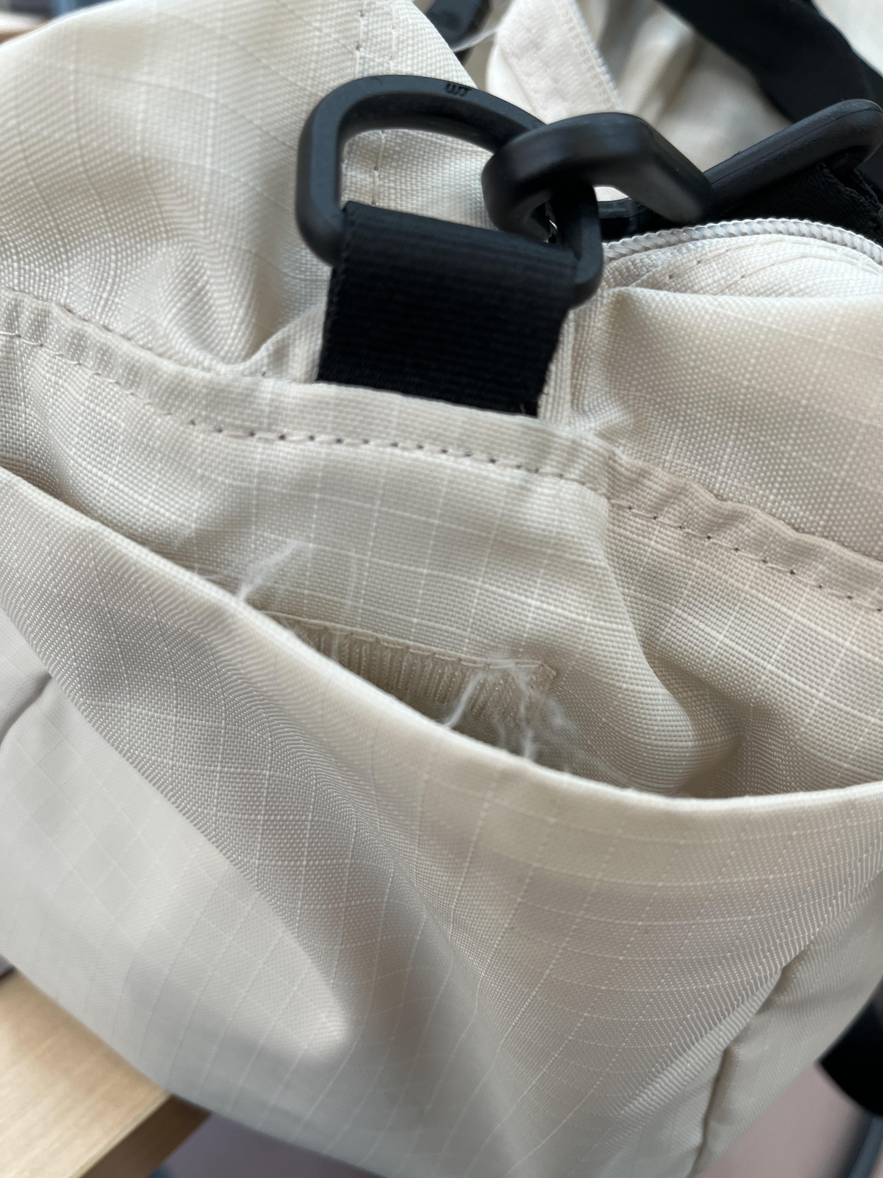 지퍼 부분은 안쪽 천은 실이 계속 밀려 나오면서 지퍼를 여닫을 때 낀다. 그리고 포켓 입구는 열었다 닫았다 할 때 손이 자주 타니까 보풀이 일면서 원사 레벨로 분해되고 있다. 립스톱이면 뭐해 아무리 봐도 천이 별로 좋지가 않아. 물론 자주 쓰면 생길 수 밖에 없는 현상이기는 한데 속도가 지나치게 빠르다.