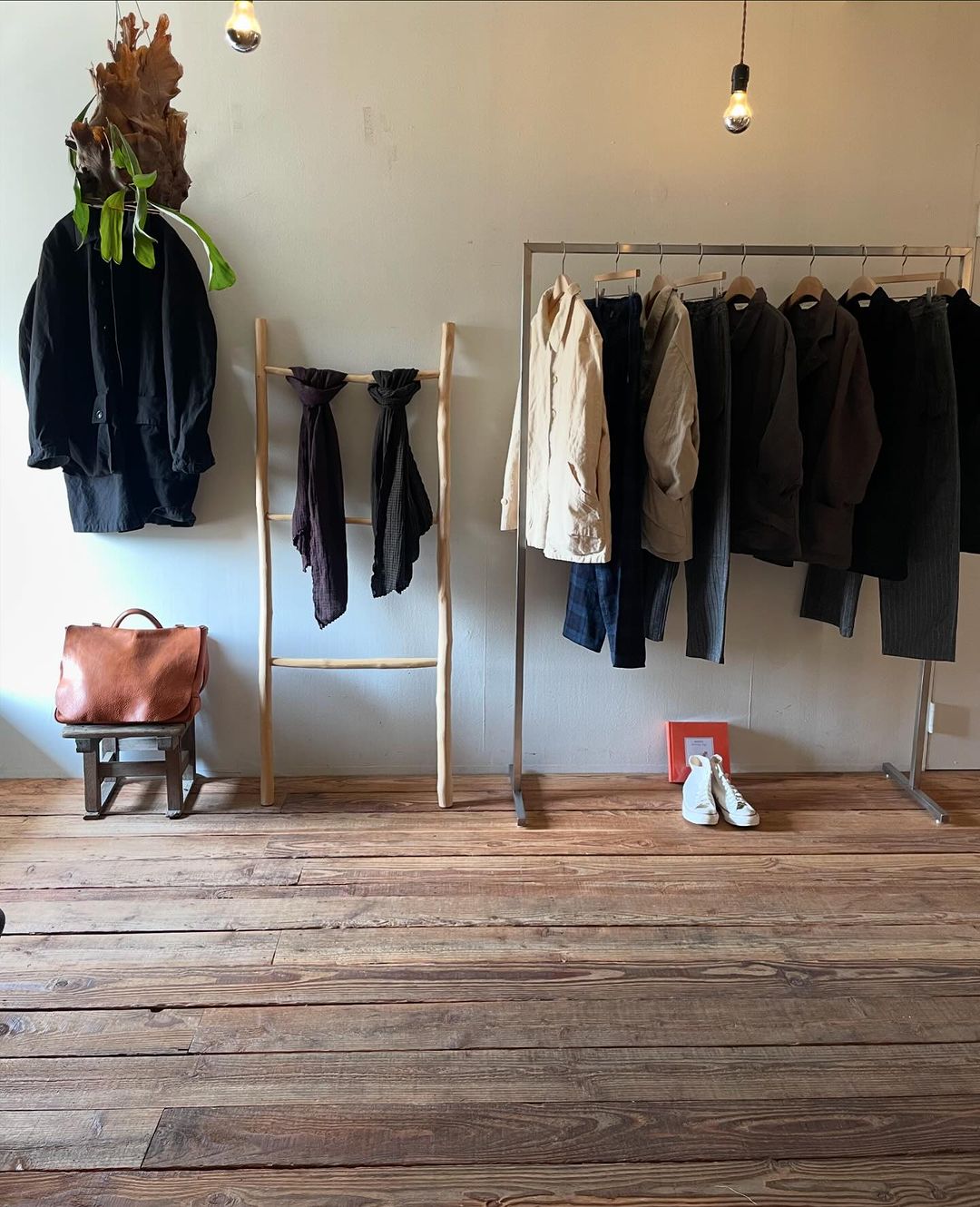 매장은 어딘가 일본 지방 개인 브랜드 샵 분위기랄까 아늑하고 창밖의 풍경도 좋다. 나무 바닥이 꽤 삐꺽거려서 신경이 좀 쓰이기는 하는데 뭐 이런 분위기려니 하면 또 그렇구나 싶다. 자기 브랜드 외에도 몇 가지 소품 등을 가져다 판매하고 있다. 특히 일본 브랜드 RIKU UMEHARA(링크)의 의복과 액세서리 등을 판매하고 있었는데 이번 주 토요일인 2024년 8월 31일에 디자이너가 방문해 제품을 소개하는 시간도 가진다고 하니 참고(링크).
