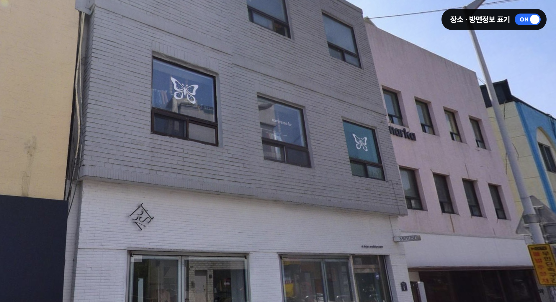 이건 로드뷰. 2층에 있다. 꽤 좁은, 약간 왜 이렇게 만들었지 싶은 계단을 머리를 조심하면서 올라가면 된다. 올라가는 길을 브랜드에서 콘셉트에 맞춰 장식을 해놓는 거 같다.