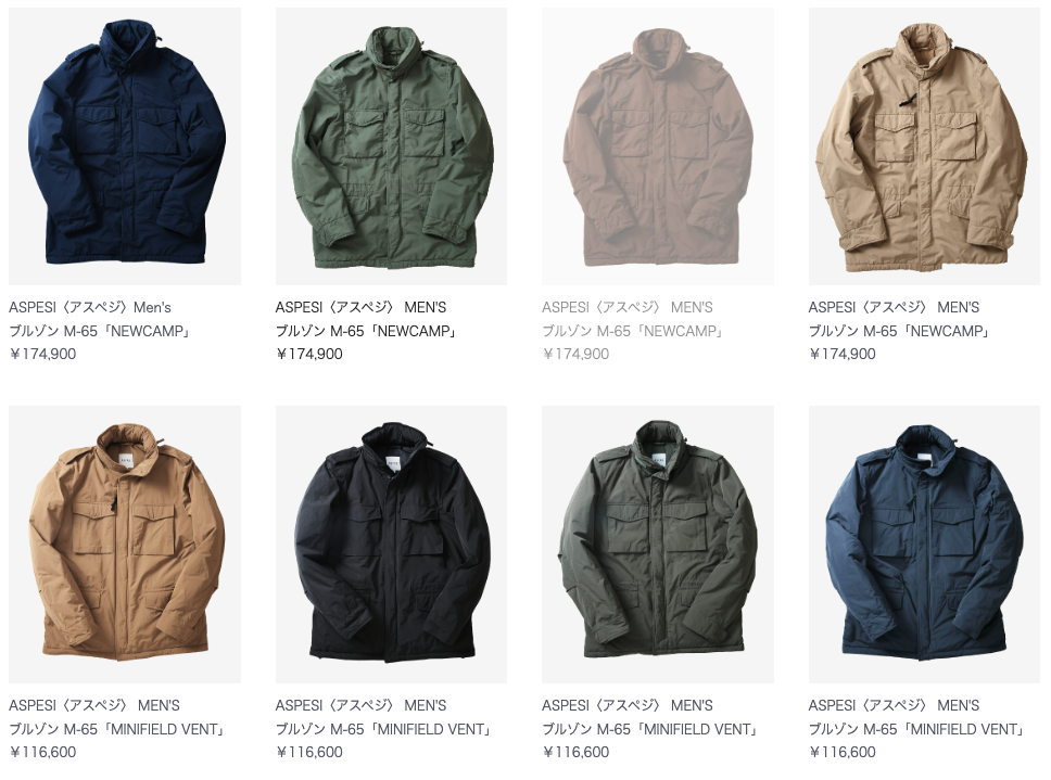 아스페시 일본에서 아카이브 컬렉션을 내놨다고 해서 좀 둘러봤다(링크). 아스페시는 정체성이 참 모호한 데 이태리 브랜드지만(원래 셔츠 공장으로 시작했다고) M65를 알파 인더스트리보다 더 열심히 팔고 있고, 미국이나 영국 등의 밀리터리 패션을 데일리하게 입을 수 있도록 바꿔놓는 선구자 중 하나 정도로 생각해 볼 수 있다. 개인적인 이미지로는 옷은 예쁘고 좋은 거 같은데 어딘가 비싸고 이거 말고 대안이 좀 많지 않나 하는 등등의 생각을 하게 만든다. 작년에 봤던 오버사이즈 피코트는 아주 좋아서 여전히 다른 브랜드의 피코트를 볼 때 기준이 되어 주고 있다.