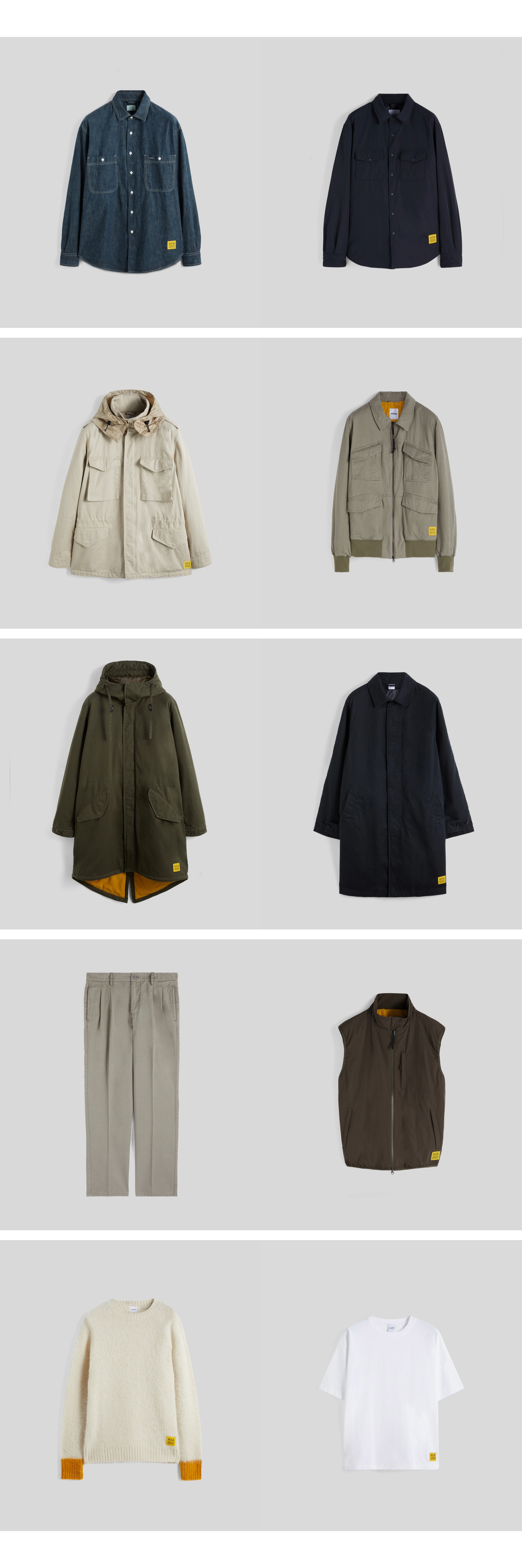 기능적으로는 저 노란 로고가 눈에 잘 들어온다. 아카이브 컬렉션이라고 위에 8개 제품 밖에 없기는 한데 그래도 아이템의 레인지는 넓다. 바지가 하나 밖에 없는 게 의외지만 대표적인 M65부터 저 귀여운 니트까지 다양하게 포진해 있으니 활용할 수 있는 폭은 넓어보인다.
