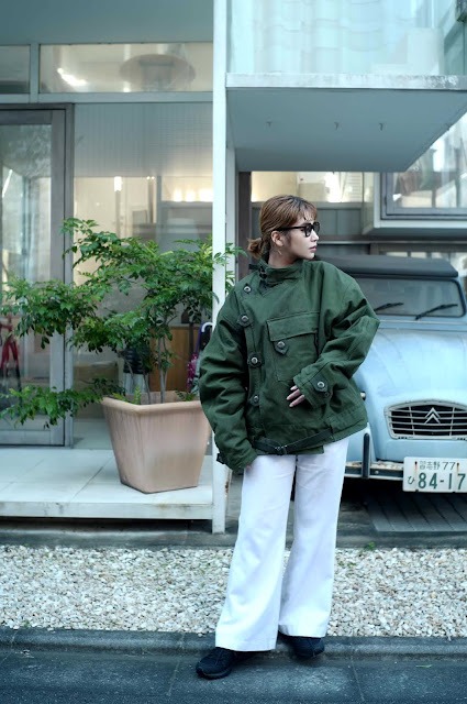 이게 플라이트 재킷을 뜯어다가 전령에게 입힐 옷을 만들면 저런 느낌이 되지 않을까 하는 거라면, 이번 몰스킨 버전은 프렌치 워크재킷을 뜯어다 바이크 전령에게 입히려고 개조하면 저런 게 나오지 않을까 싶기도 하다. 일단 이번에 나온 재킷의 경우 느낌은 프렌치 몰스킨 파란색이 상당히 매력이 있다는 것과 반짝이는 단추와의 대조가 마음에 들었다. 다만 이런 류 재킷은 바이크를 타고 있으면 몰라도 일상에서 오픈하고 다녔을 때 좀 이상해진다.