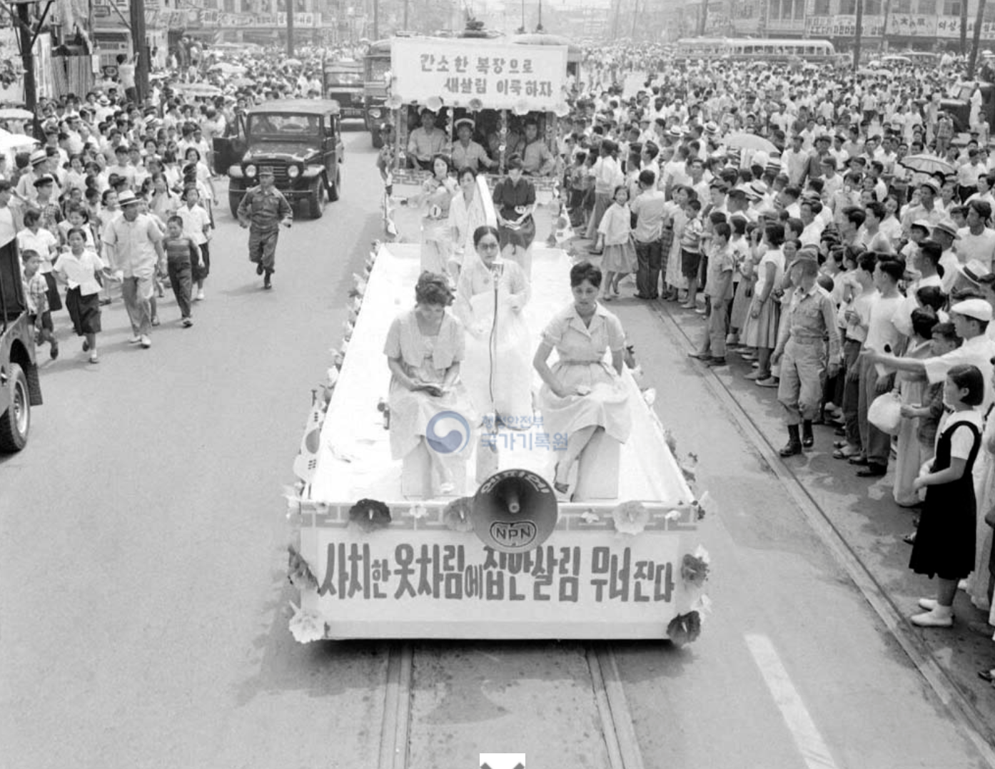 6.25 전쟁이 끝나고 난 후 재건이 시작되었고 물자 절약을 위한 여러 정책이 발표되었는데 그중 의복에 관한 게 근검, 절약을 위한 신생활운동, 그리고 공무원과 국무위원을 중심으로 한 신생활복(재건복)을 정하는 거였다. 당시까지 일상복으로 한복을 많이 입었는데 옷감을 아끼자는 의도도 포함되어 있다. 그렇지만 이런 운동은 주로 학생들에게 집중되었기 때문에 4.19 이후 신생활운동을 학생들에게만 맡길 게 아니라 정부도 적극적으로 임해야 한다는 여론이 많았다.