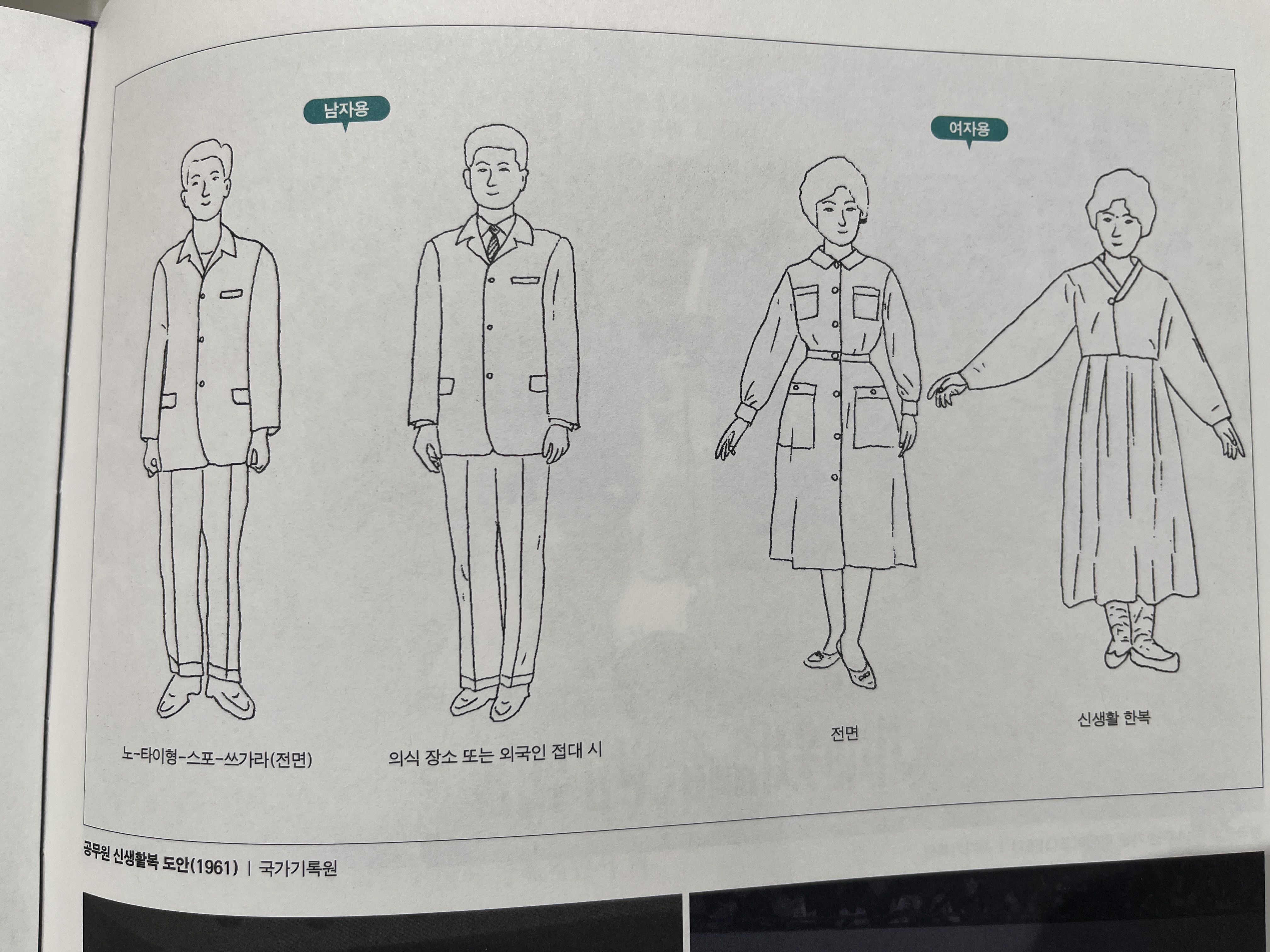 아무튼 1961년 5.16 군사쿠데타로 집권한 군사정권도 이런 기조를 이어 받아 국가재건최고회의 아래 재건운동국민본부를 발족시켰고 여기에서 공무원용 표준 간소복을 정해 착용하도록 했다.