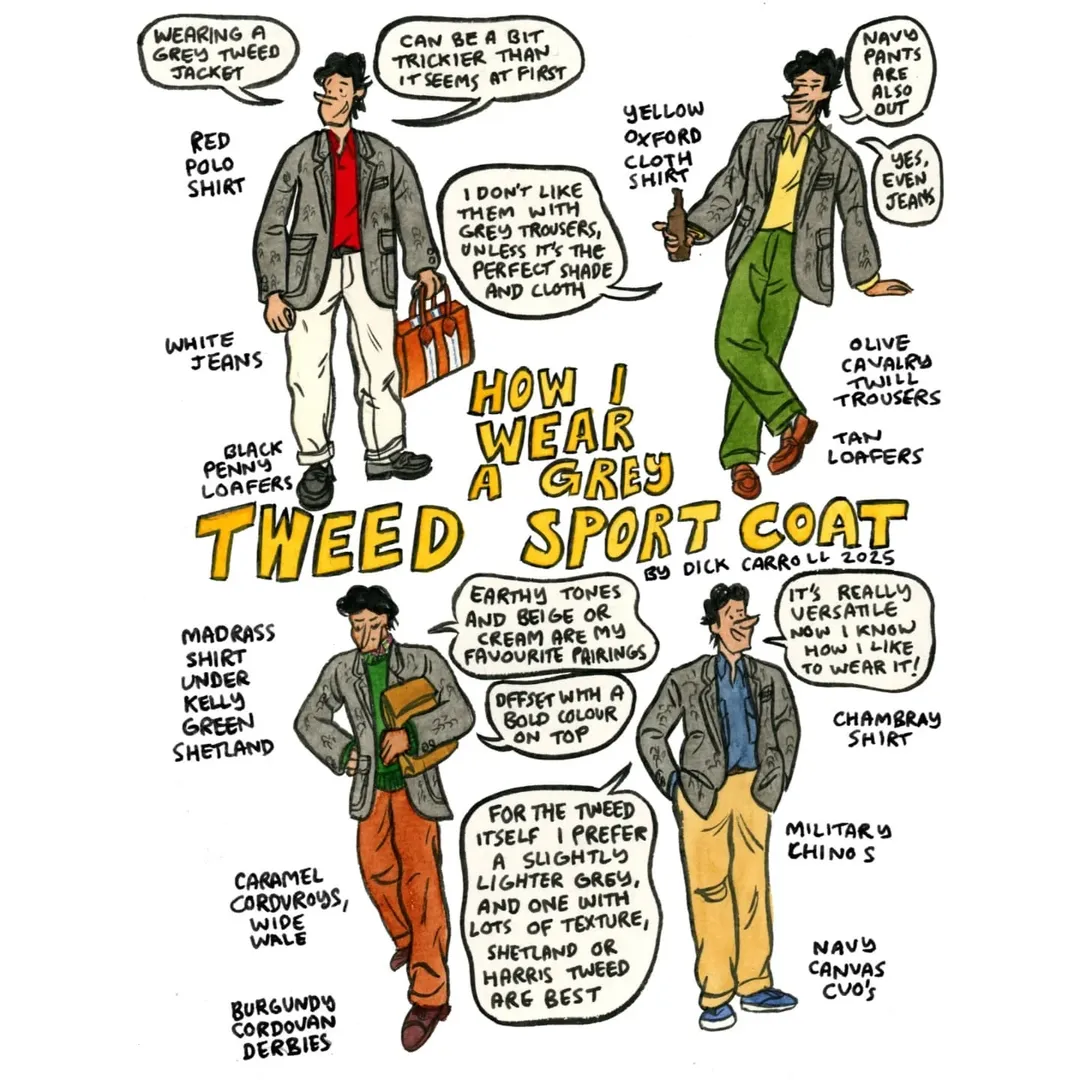 워크룸에서 번역본도 나온 딕 캐롤의 만화에도 그레이 헤링본 트위드 재킷 이야기가 종종 나온다.