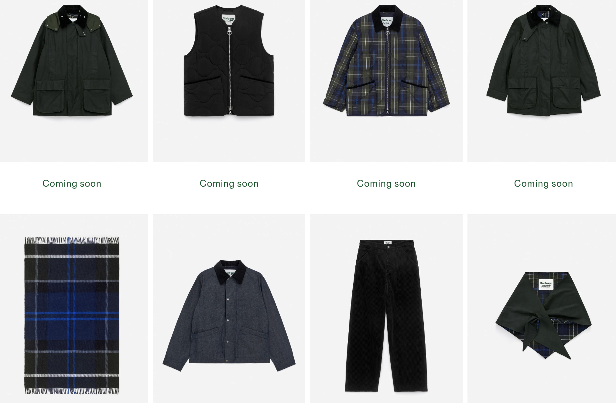 남녀용 재킷, 퀼팅 베스트가 있고 왁스는 아닌 듯한 재킷, 퀼팅 재킷, 스카프, 바지가 있다. 왼쪽 아래는 스웨덴 울 공장에서 제작한 램스울 블랭킷이라고 한다. 상세 사항이 아직 나오지 않았는데 바지는 코듀로이다. 바버와 노르딕, 스웨덴 고틀랜드의 조합이라는 콘셉트. 그렇다면 영국보다 더 추운 지역에서 입을 수 있어야 할텐데 사진으로 볼 때는 기존 바버의 옷과 크게 다르지 않은 분위기다. 아르켓이라 가격도 비슷하지 않을까 싶다.
